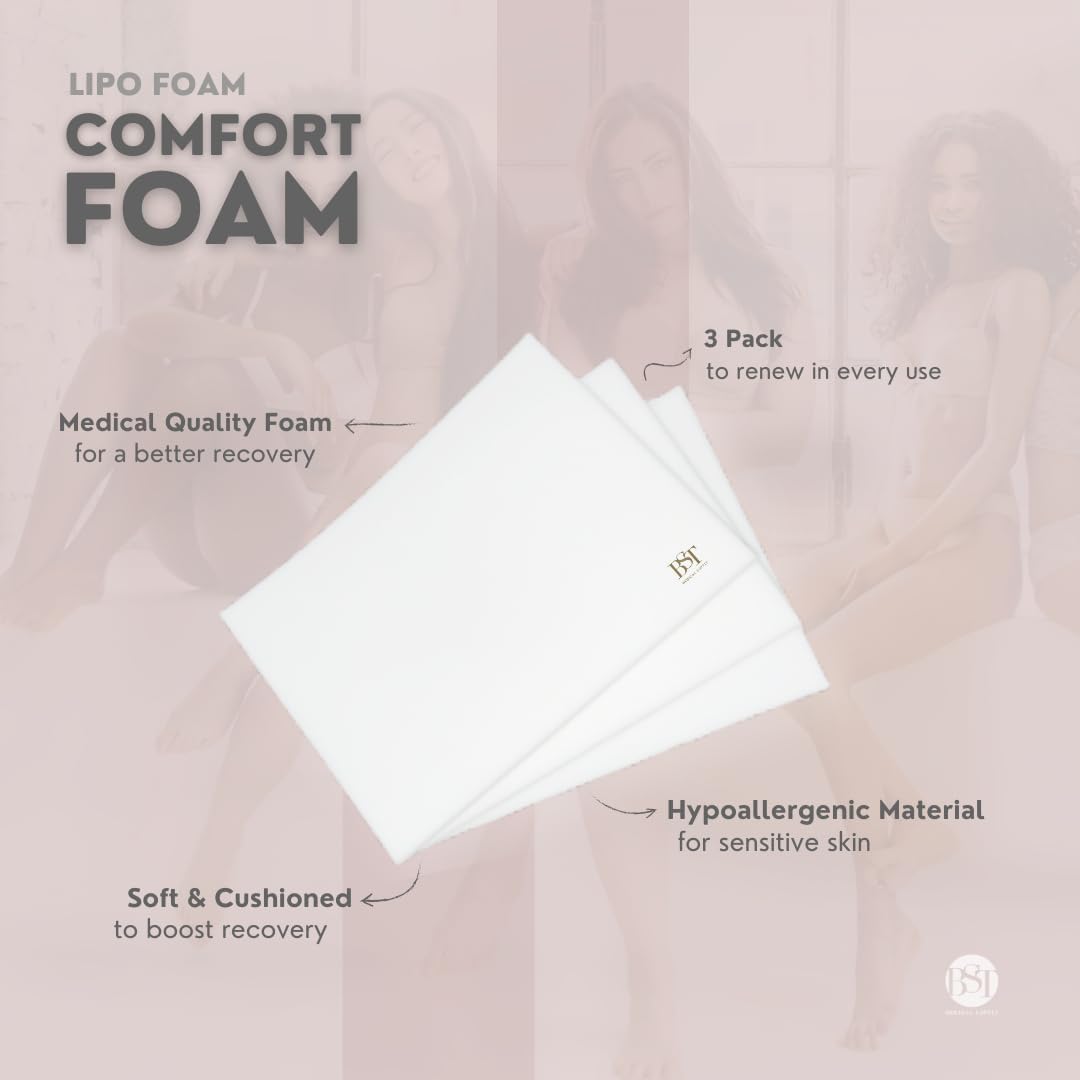 The BST Medical Supply 501 Comfort Foam 3-Pack is an essential recovery tool for those undergoing post-liposuction, cosmetic or generic surgery. Made from professional medical-grade foam, these pads are designed to offer optimal comfort and support during healing. Sized at 11” x 8” x 0.45”, they are ideal for various body areas such as the abdomen, arms, and chin, providing uniform compression to reduce swelling and bruising for a smoother recovery. These foam inserts fit between your post-surgical garment and the treated areas, ensuring even pressure distribution and preventing creases and folds. This design helps your skin heal evenly without discomfort from pressure points. Non-sterile and versatile, they integrate seamlessly with any compression garment, making them a practical choice for any recovery setting. Lightweight and easy to apply, the BST Medical Supply 501 Comfort Foam 3-Pack enhances your recovery process with effective, comfortable support.