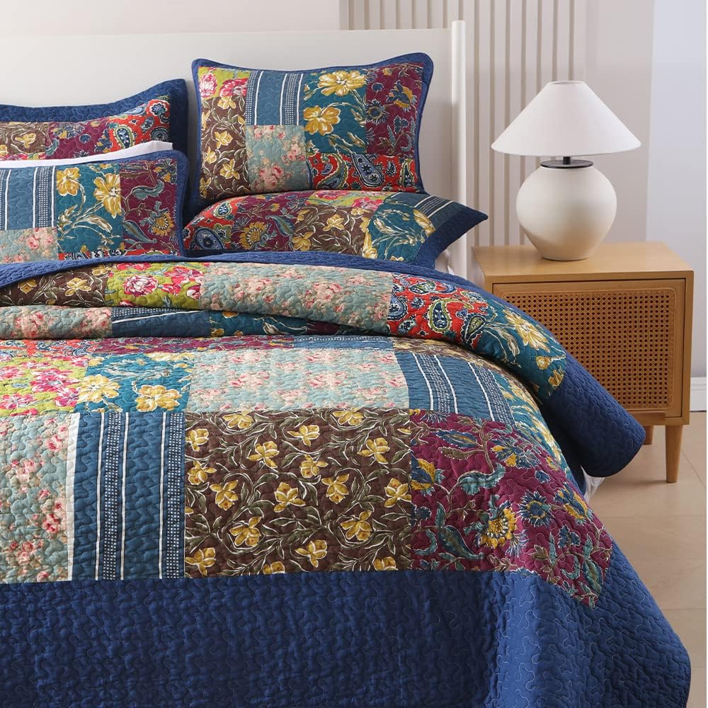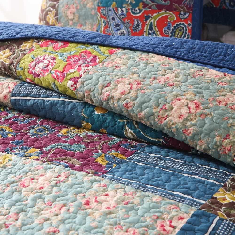 8 reviews for Cotton Bedspread Quilt Sets Reversible Bedding Coverlet Sets,3 Pieces Paisley Vintage Floral Rustic Patchwork Bedspread, King Size
