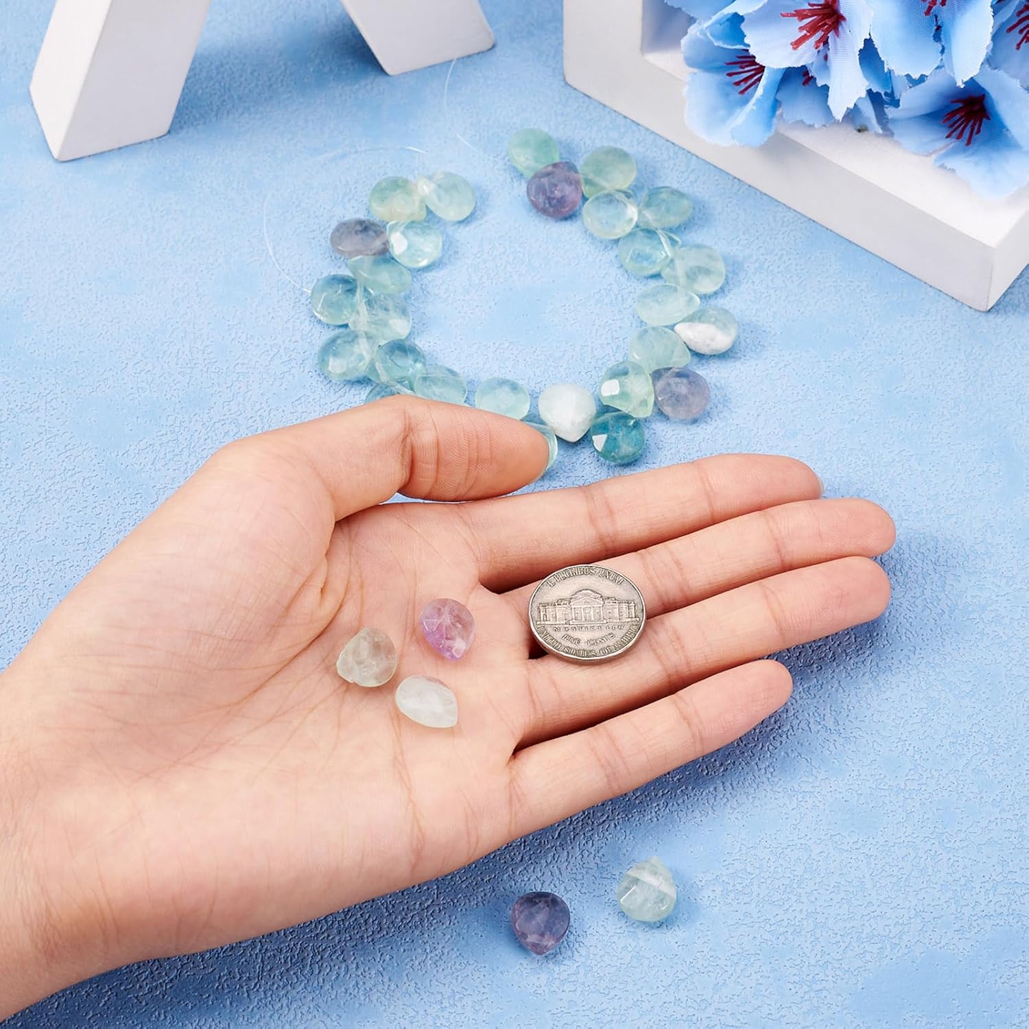 Wide Application– High Quality stone pieces in string is great value and convenient for you to make eye-catching bracelets, necklaces, earrings, cellphone charms, bag charms, pendants, chokers, anklets, brooches, key chain, hair bows, gift cards and home decoration, ect.