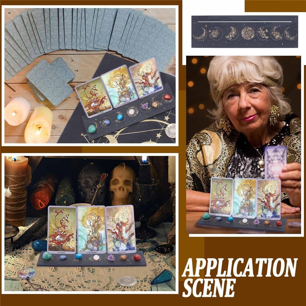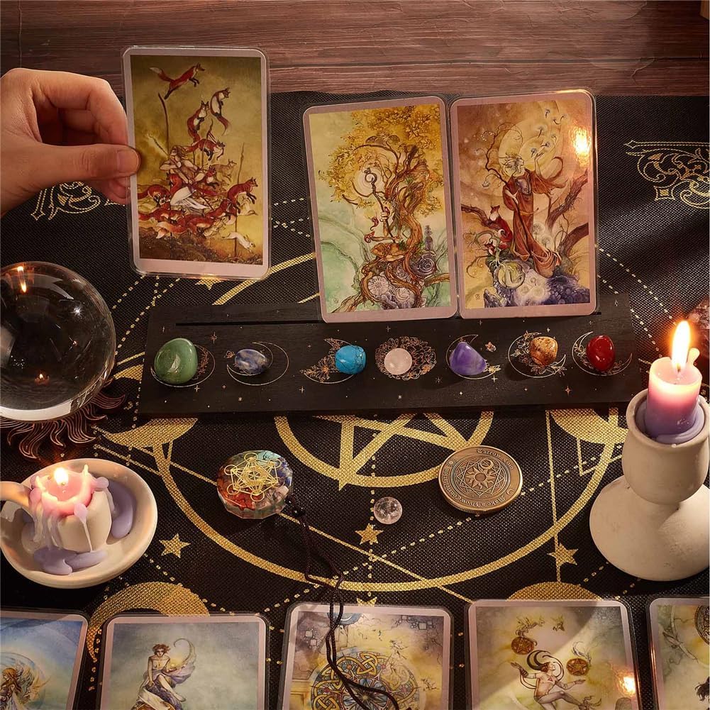 CRASPIRE Tarot Card kit Wooden Tarot Card Stand Holder with Altar Tablecloth 7Pc Chakra Pendant Crystal Gemstone Challenge Coin Divination Tools Tarot Card Accessories