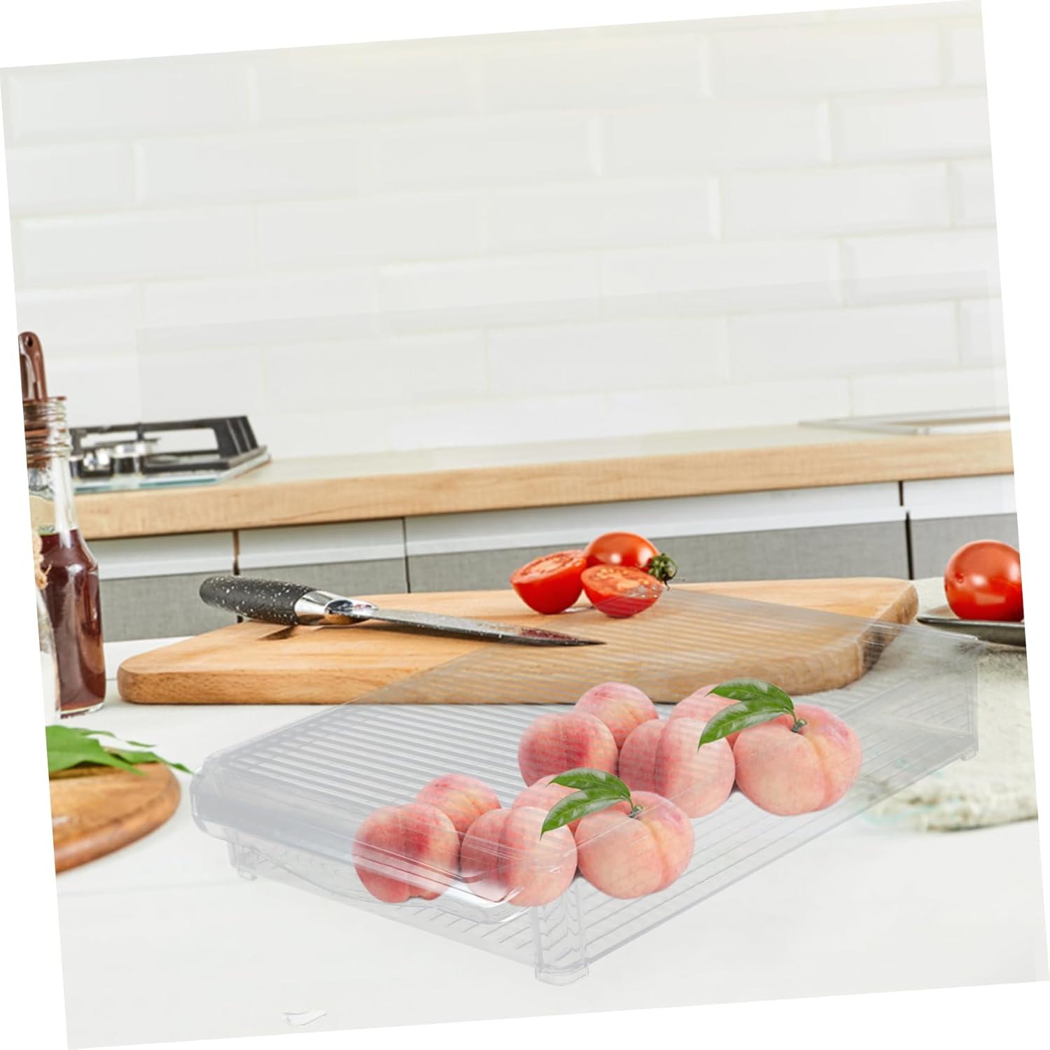 Crisper Fridge Refrigerator Food Fresh Containers Fruit Holder Cabinet Organizer Freezer Storage Case Kitchen Supply Kitchen Containers with Lid Food Container Plastic White