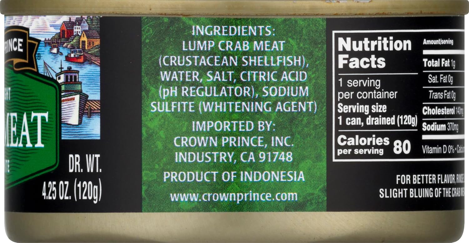 Premium lump white crab meat packed in water; Non-GMO Project Verified