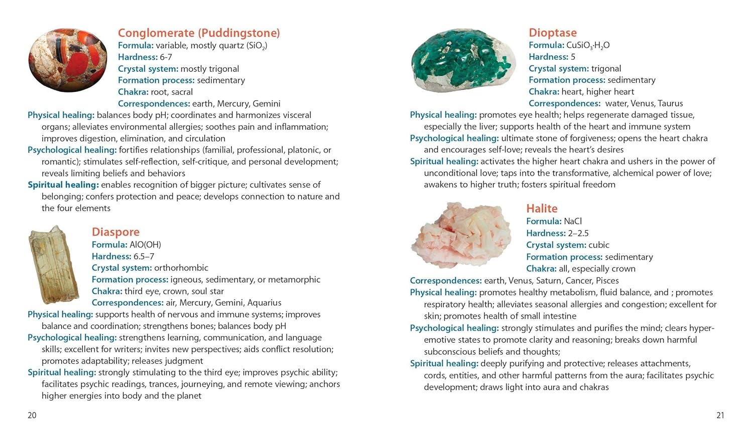 The encyclopedia of crystals includes familiar ones like agate, calcite, rose quartz, and hematite as well as rarer and more unusual crystals, such as phenakite, cavansite, and yooperlite—some of which have never before appeared in print. Each entry features a beautiful color photo of the stone and defines its physical, psychological, and spiritual healing properties and its corresponding chakra, element, planet, and zodiac sign. The author also looks at the geological nature of each stone, such as its hardness and crystal structure, enabling you to explore the connections between mineral science and the metaphysics of crystal healing.