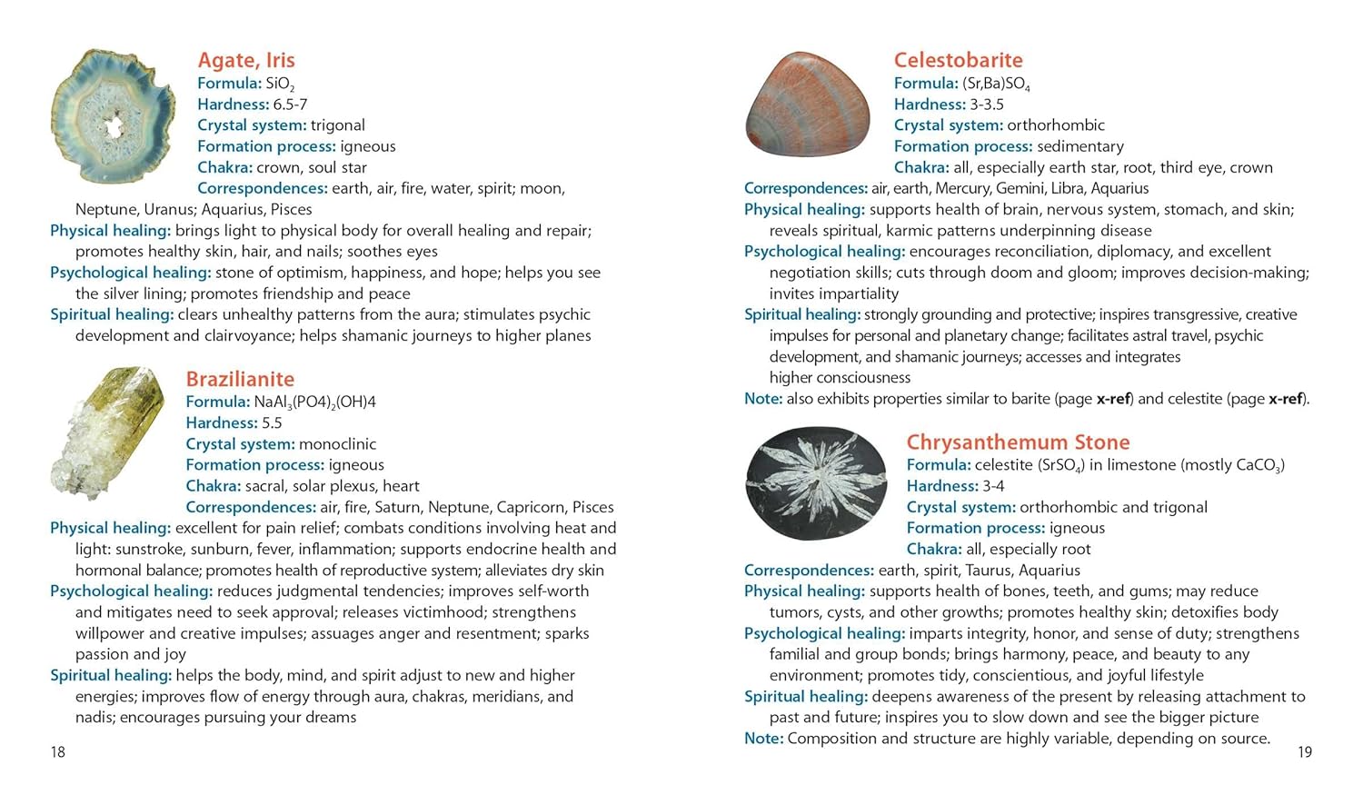 • Each entry features a color photo of the stone and defines its physical, emotional, and metaphysical properties and its corresponding chakra, element, planet, and zodiac sign