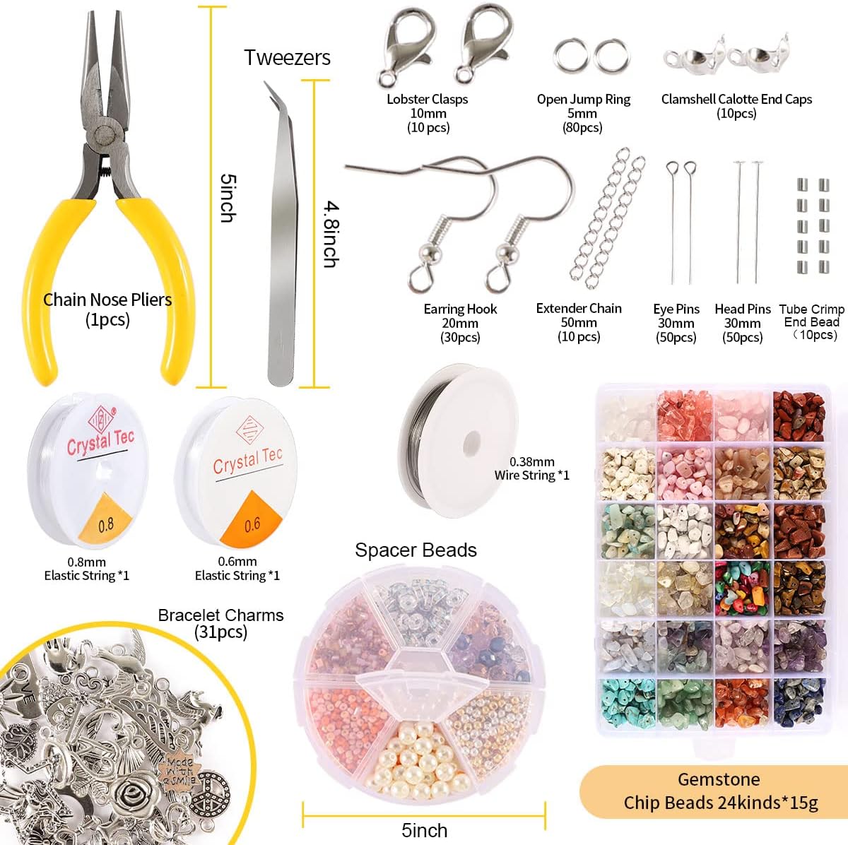 9 reviews for Crystal Beads for Jewelry Making, 2800PCS Natural Crystal Bead Gemstone Chip Beads for Earring Ring Making Kit with Spacer Beads Earring Hooks Pendants Charms Wire String for DIY Bracelets Beading Kit