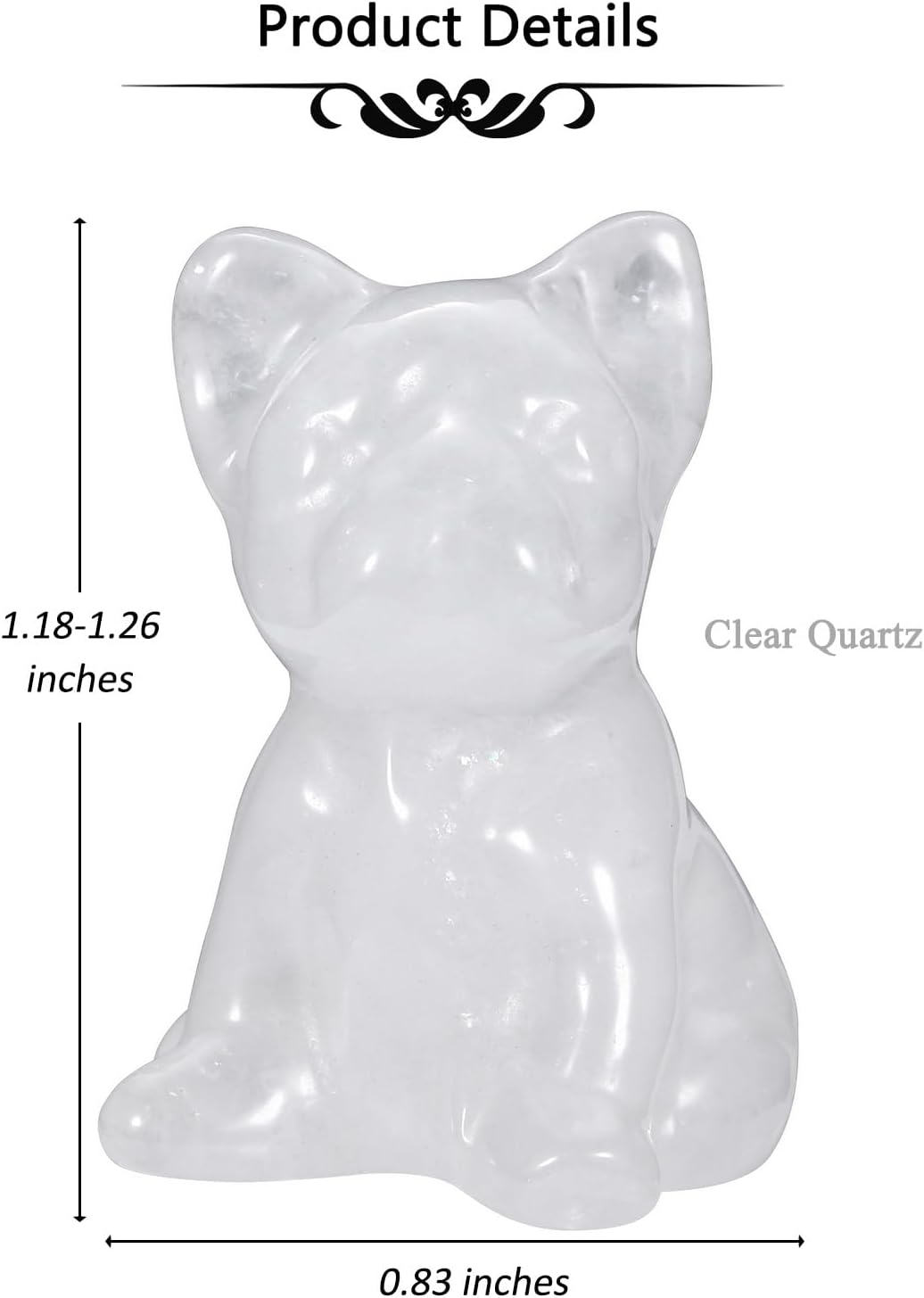 Specifications: bulldog sculpture height: 1.18-1.26 inches(30-32mm), 0.83 inches/21mm in width; Material: clear quartz crystal stone; Weight: 14g; Package: 1x gemstone puppy statue
