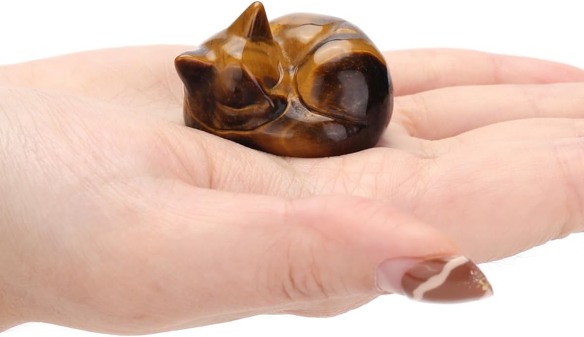 2 reviews for CrystalTears Tiger Eye Healing Crystal Cat Figurine Carved Crystal Gemstone Sleeping Cat Statue Lucky Cute Stone Cat for Home Office Desk Meditation Decor Cat Gifts for Women Men Christmas