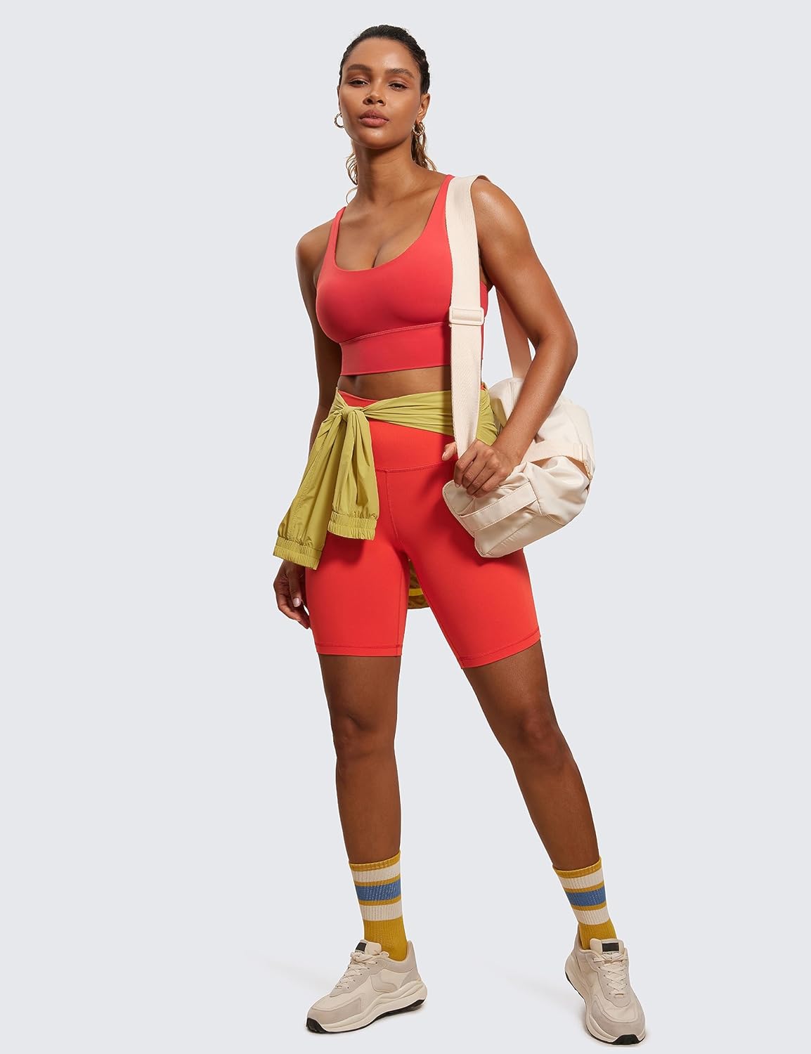 Quality and fit are paramount in activewear, and the CRZ YOGA Women’s Strappy Longline Sports Bra delivers on both fronts with flying colors.Let’s start with the fabric â it’s simply exceptional. The blend used by CRZ YOGA strikes the perfect balance between comfort and performance. Soft to the touch yet supportive where it counts, this sports bra feels like a second skin during even the most intense workouts. Plus, the moisture-wicking properties keep you feeling fresh and dry, no matter how much you sweat.Now, onto the fitâit’s nothing short of fantastic. The crisscross design not only adds a stylish flair but also provides excellent support, making it ideal for medium-impact activities like yoga or Pilates. The longline silhouette offers added coverage and stability, while the padded cups ensure a flattering and comfortable fit. Whether flowing through a vinyasa sequence or hitting the weights, this sports bra moves with you, offering the perfect blend of support and freedom of movement.But what truly sets the CRZ YOGA Strappy Longline Sports Bra apart is its attention to detail. Every aspect of this bra is thoughtfully designed. Plus, the range of colors and sizes ensures that every woman can find her perfect style and fit.