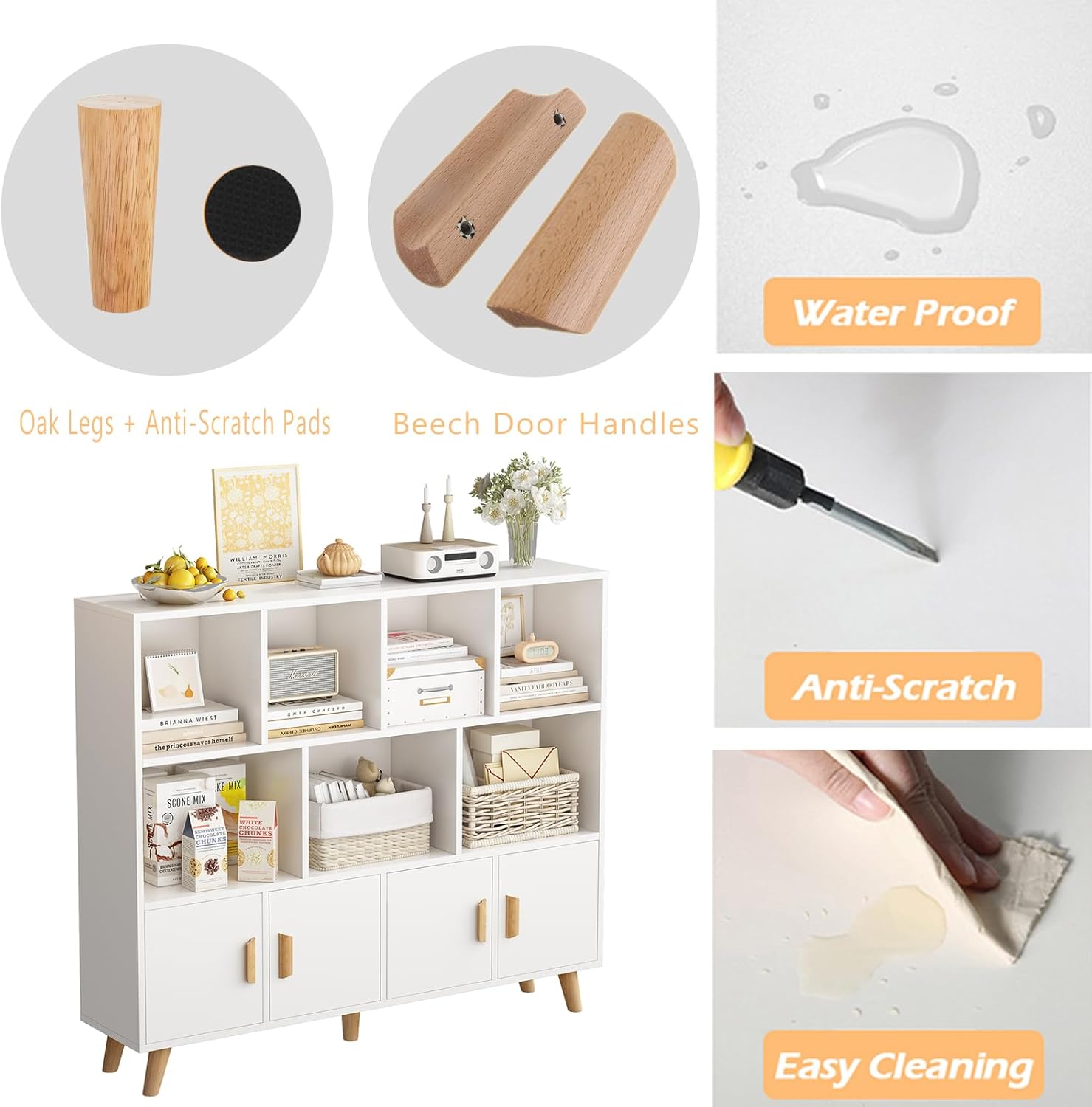 WITH DOORS – The bottom four cubes of the bookcase are designed with doors. You can place items that you don’t want to display or items that need to be stored in these cubes with doors for dustproof and privacy;