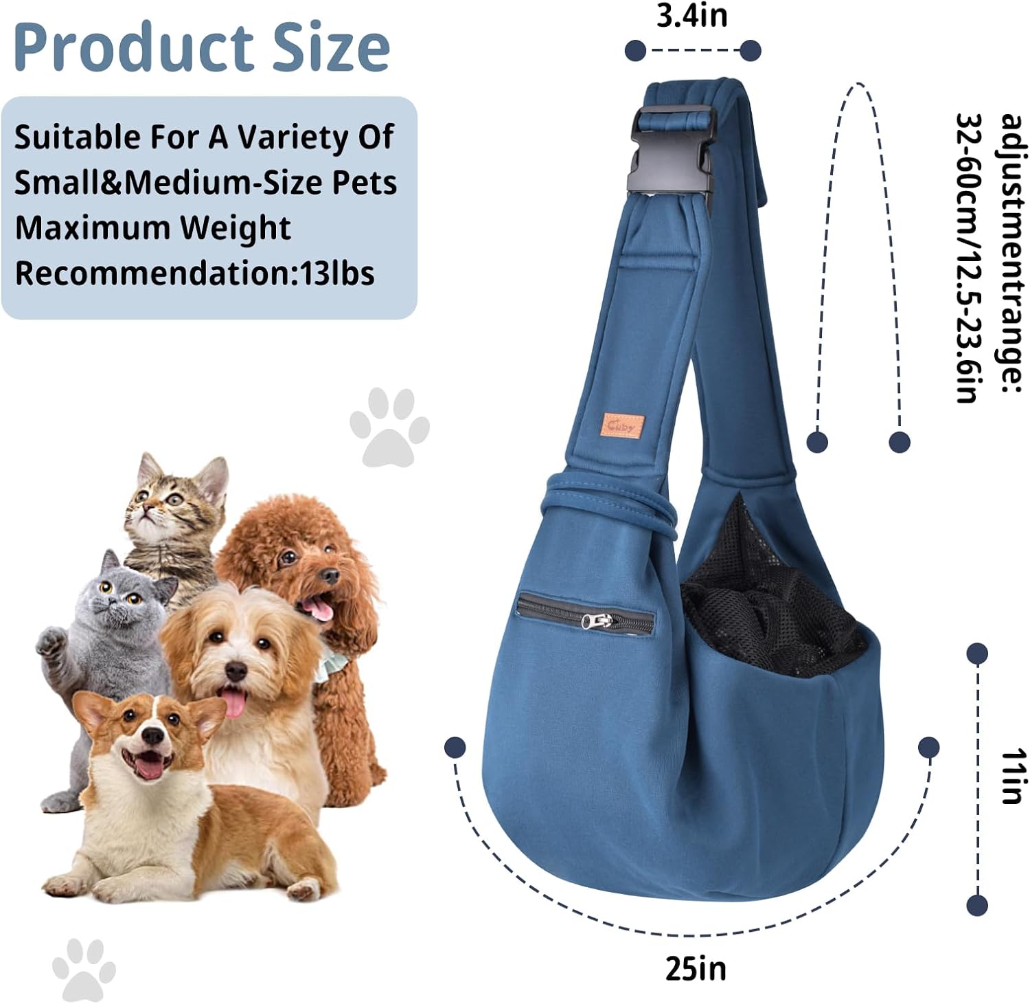 CUBY Dog and Cat Sling Carrier – Small Dog Carrier Sling with Adjust Strap & Zip Pocket, Hands Free Soft Dog Slings for Small Dogs Cats Puppy Pets Outdoor Travel Safety Purse Bag (Navy Blue)