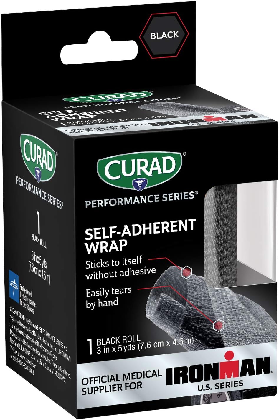 CURAD IRONMAN Self-Adherent Athletic Wrap, Official IRONMAN Medical Supplier, Black, 3 inches x 5 yards, Compression Support for Sports Injuries, Joint Stability, and Muscle Recovery