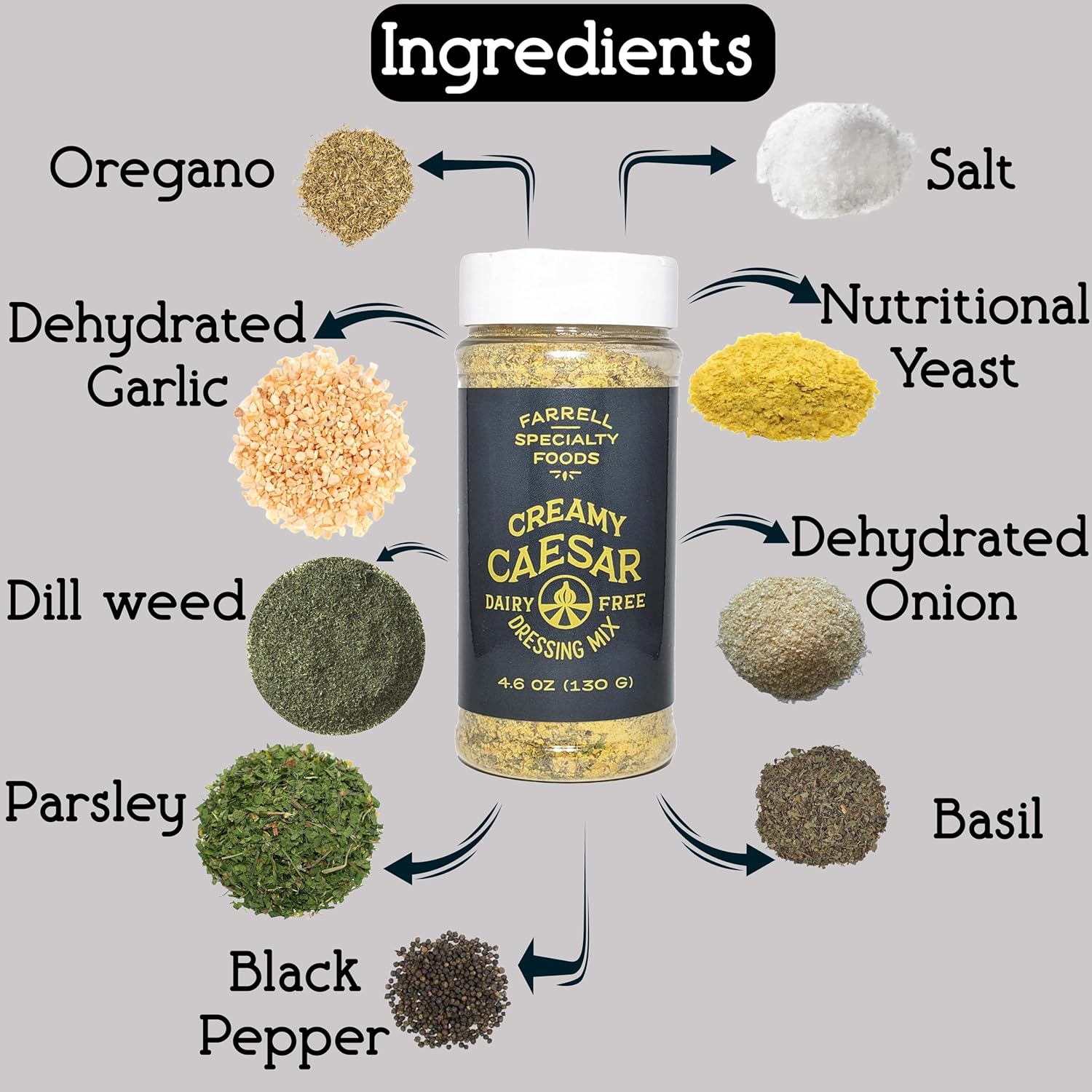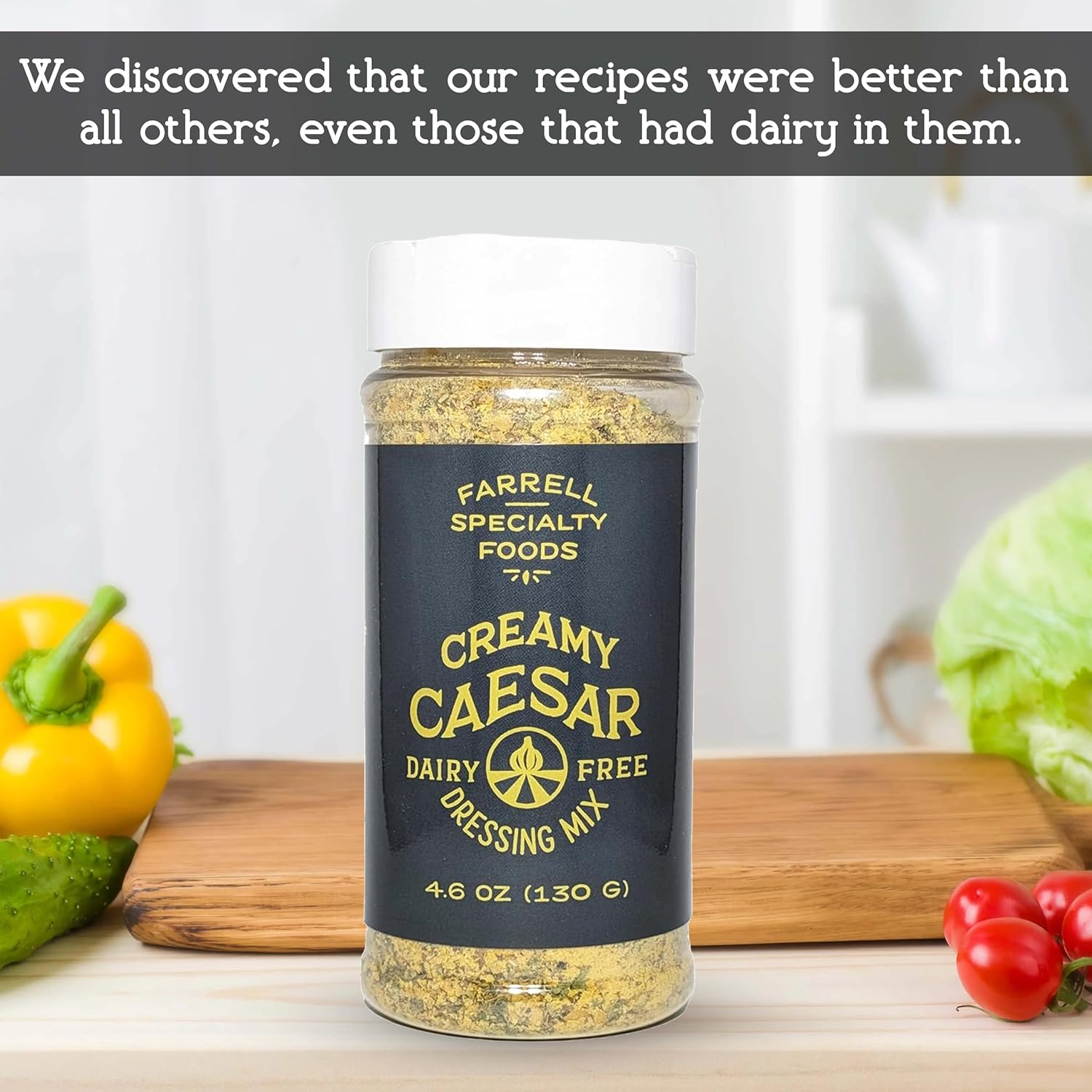 Dairy Free Creamy Caesar Dressing Mix by Farrell Specialty Foods – Dairy, Egg, Soy, Nut, & Sugar Free – Delicious Salad Dressing & Seasoning (Vegan 4.6 oz jar (130 g))