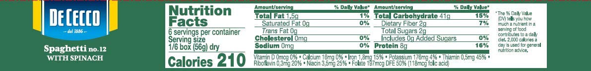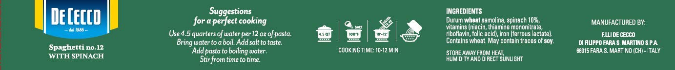De Cecco Pasta, Spaghetti with Spinach, 12 Ounce (Pack of 12)