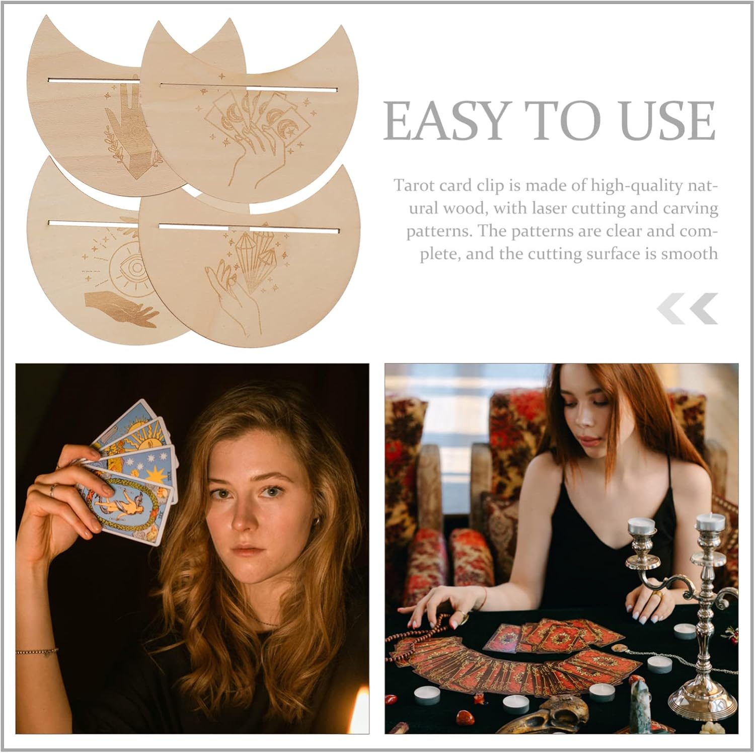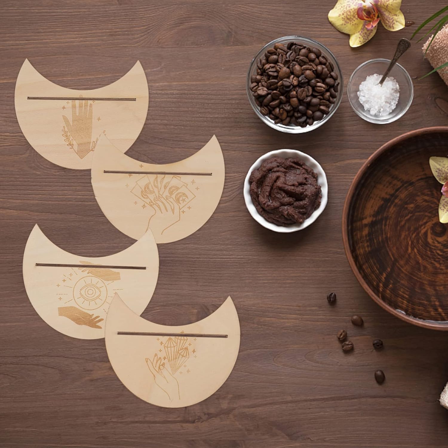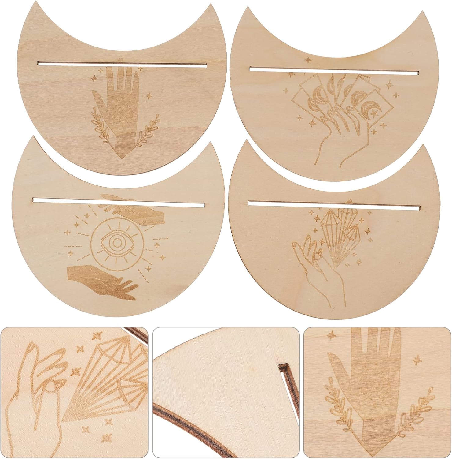 4pcs Tarot Card Holder Wood Stand Wooden Tarot Holder Moon Phase Tarot Stand Tarot Display Stand Tarot Deck Display Stand Tarot Altar Divination Holder Ornament Tray Delicate Tool