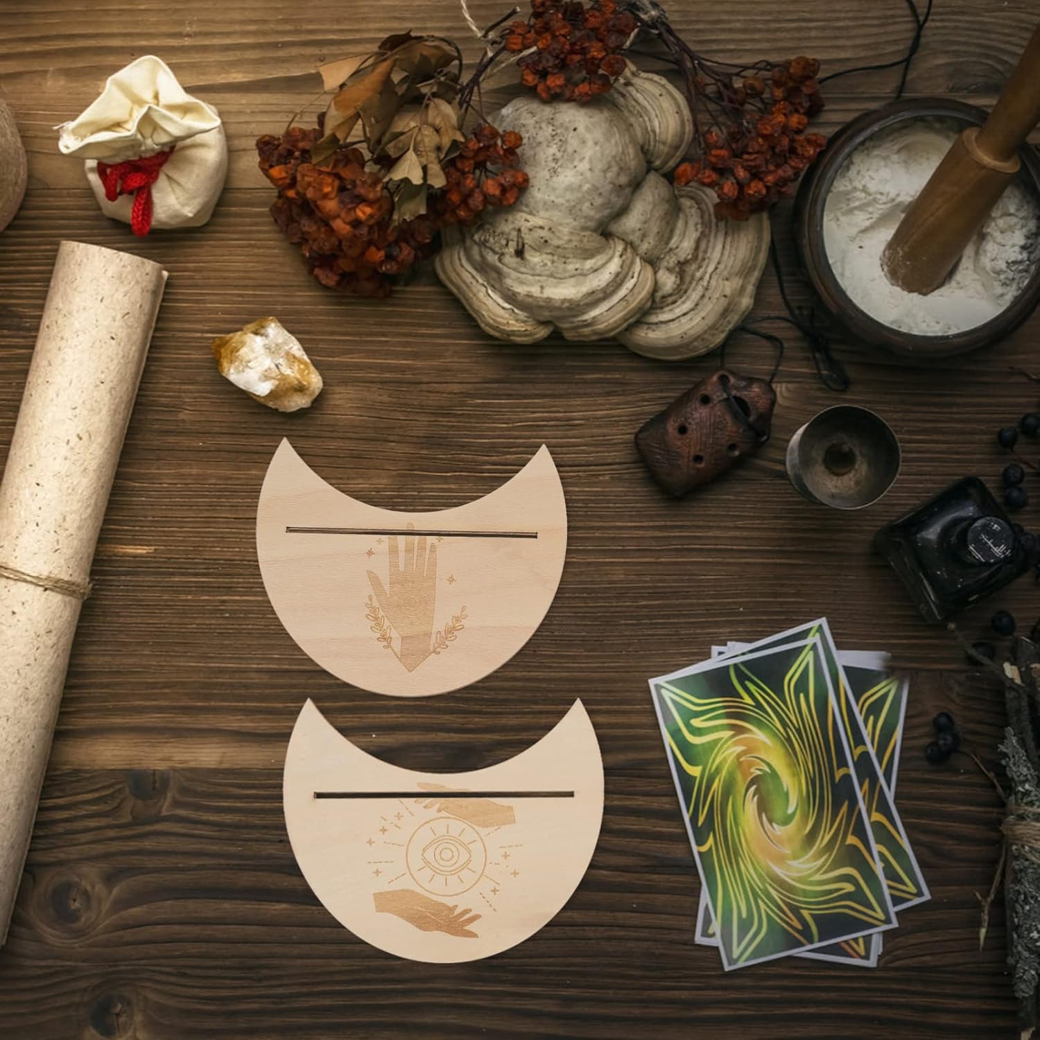 DECHOUS 4pcs Tarot Card Holder Desktop Tarot Holder Delicate Tarot Tray Tarot Altar Divination Accessory Wooden Bracket for Tarot Decorative Card Holder Tarot Divination Tool Tarot Stand