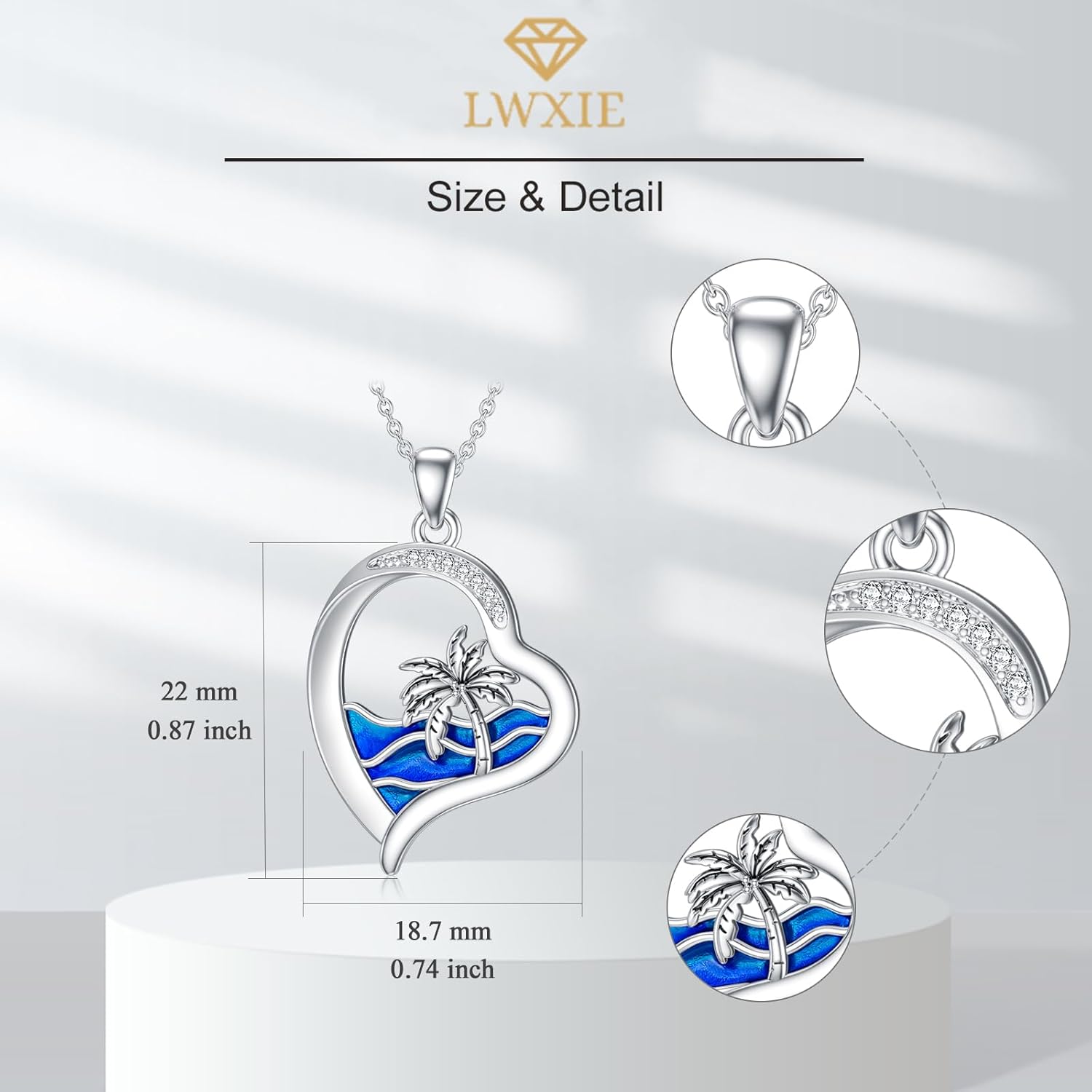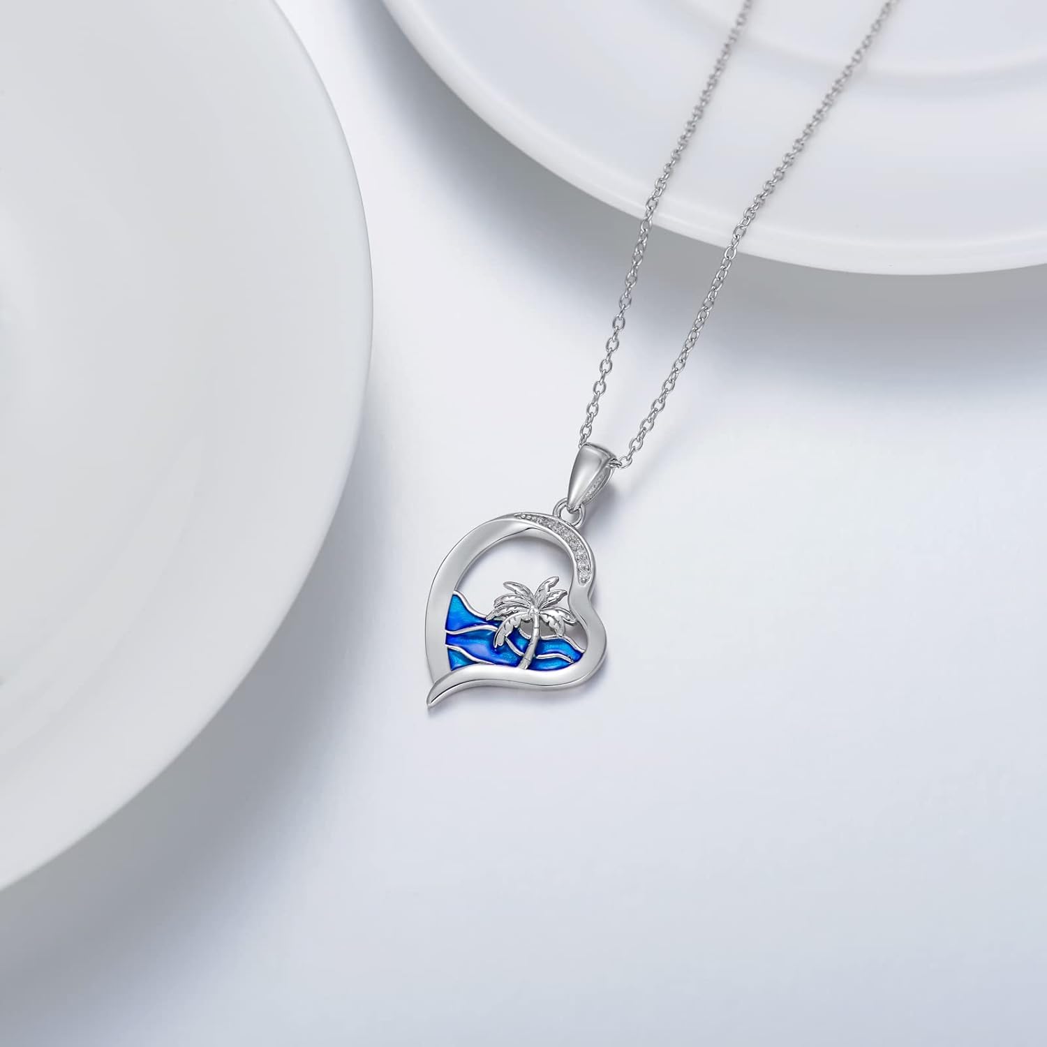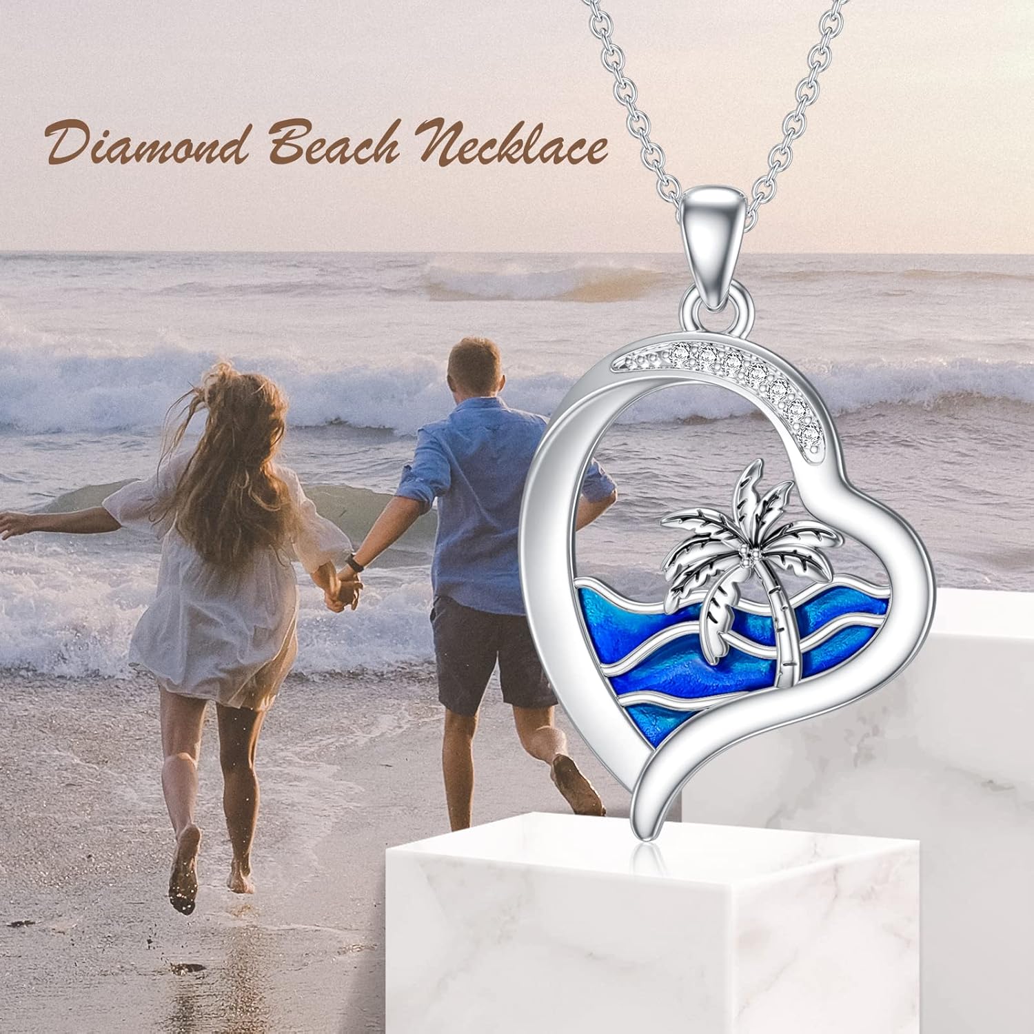 The design of this beach necklace features an ocean wave,coconut tree and heart pendant, which symbolizes the beauty and power of the sea and the love that it inspires.