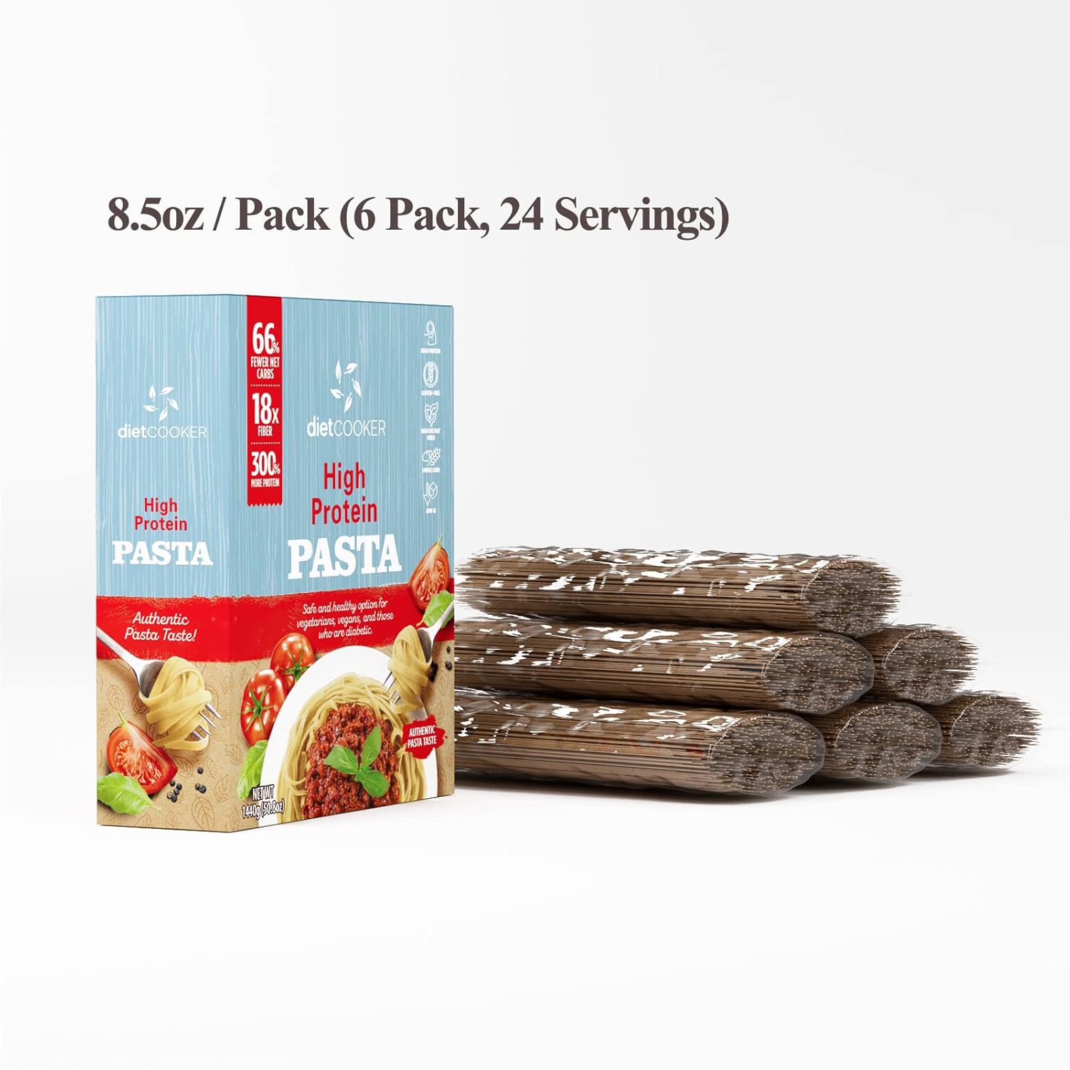 DIET COOKER High Protein Pasta, 24g Protein & 7.4g of Fiber In Every 2 oz Serving, Low Glycemic Pasta, Low Carb Pasta, Healthy Spaghetti & Fettuccine – Keto Noodles 50.8oz (6 Pack, 24 Servings)
