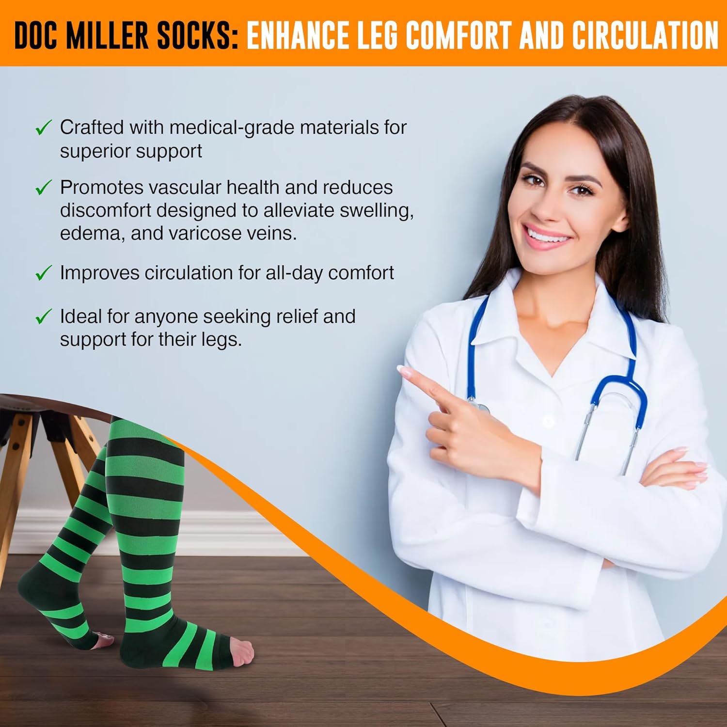 Doc Miller Open Toe Compression Socks for Women and Men 15-20mmHg, Shin Splints, Varicose Veins – 1 Pair