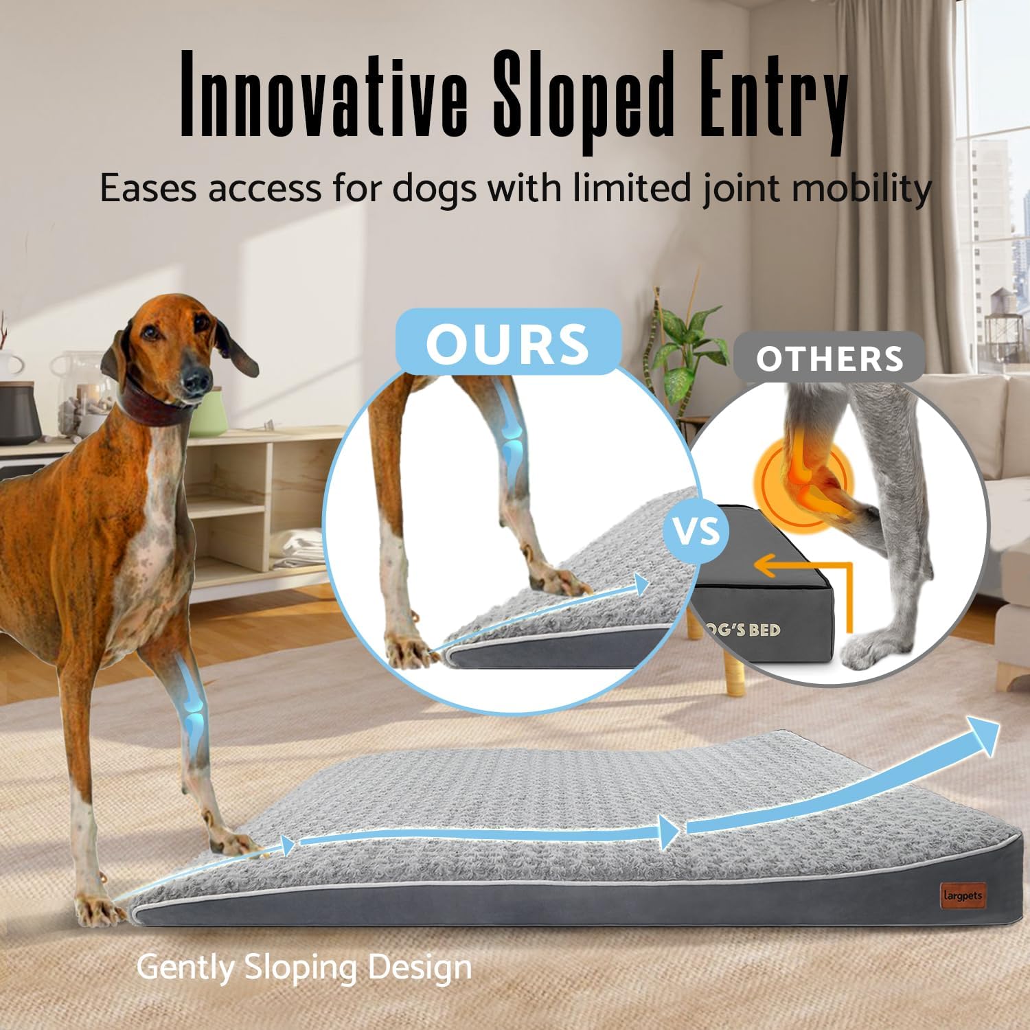 【New Upgrade – Gradual Sloped Design】This orthopedic dog bed is specially designed for optimal comfort and support for medium to large dogs over 6 years old. Unlike other orthopedic dog beds, ours uses an inclined slope design, which allows dogs with mobility issues to easily get on and off the bed to rest comfortably.