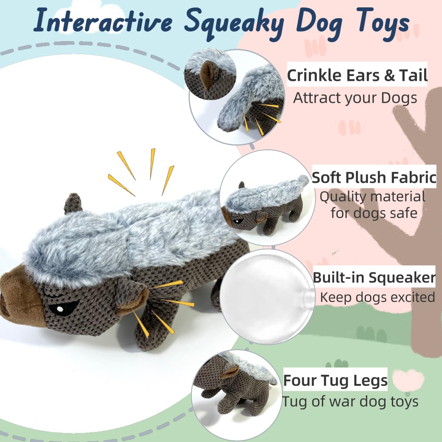 Dog Toys for Aggressive Chewers, Squeaky Crinkle Plush Dog Chew Toys, Interactive Tug of War Dog Toys to keep them busy, Tough Dog Stuffed Animals for Teething, Dog Toy for Small/Medium Breed