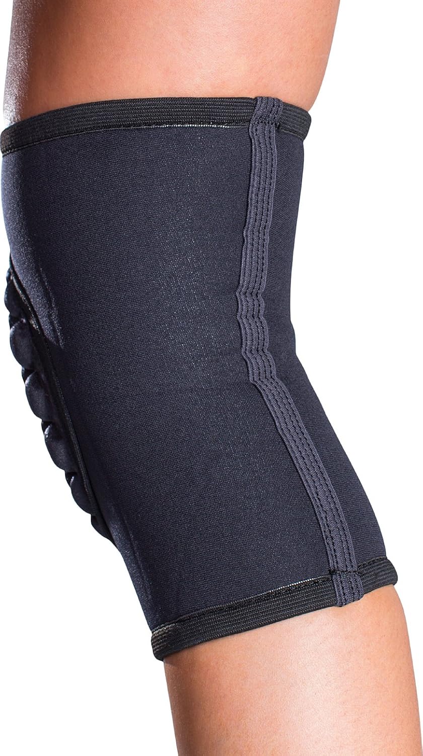 The DonJoy Spider Knee Pad Sleeve is designed with a unique honeycomb structure that contours to your knee, providing maximum cushioning and comfort. This low-profile knee pad sleeve is made of high impact-resistant foam which provides protection during contact sports such as volleyball, basketball, and football, as well as job related activities. The DonJoy Spider Knee Pad Sleeve is anatomically designed, so it’s less likely to shift around while you play sports and participate in other physical activities. Breathable lycra material provides a comfortable fit, even during periods of extended wear. The stretchable fabric allows you to easily slide it into place, and eliminates the need for Velcro adjustments. Universal fit allows the DonJoy Spider Knee Pad Sleeve to be worn on either the left or right leg.