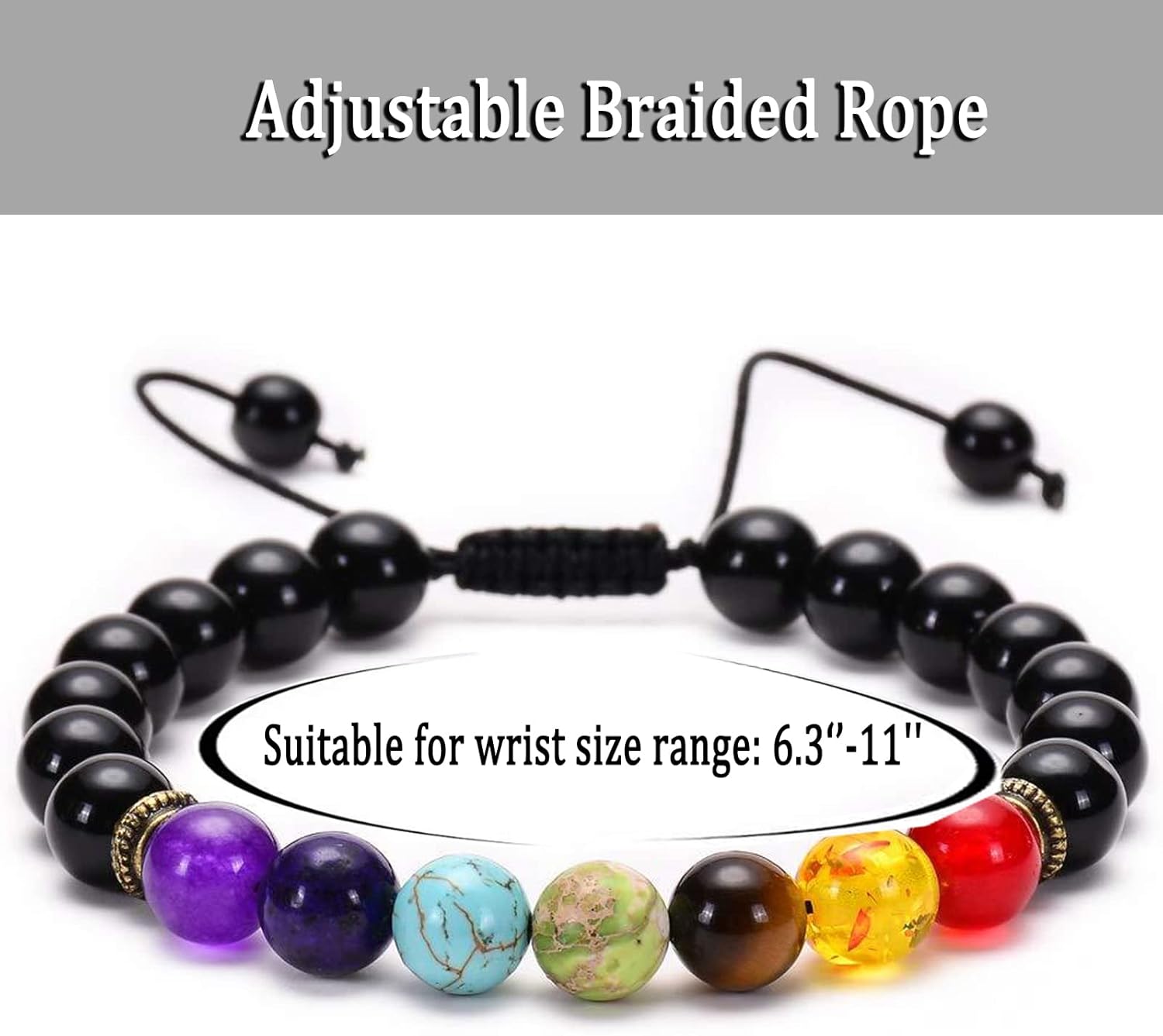 8 reviews for DRTMLY Crystal Chakra Bracelet, Adjustable Healing Stone Bracelets, Braided Rope Beaded Bracelet, Relaxation Gift for Women&Men