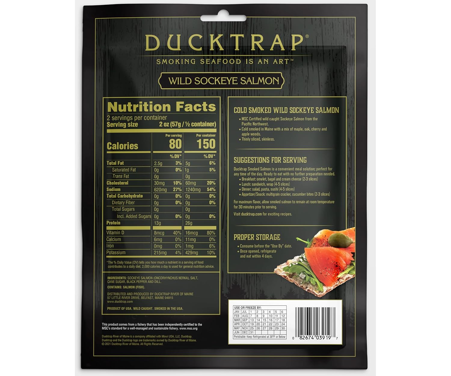 Ducktrap, Cold Smoked wild Sockeye Salmon, 0.25lb