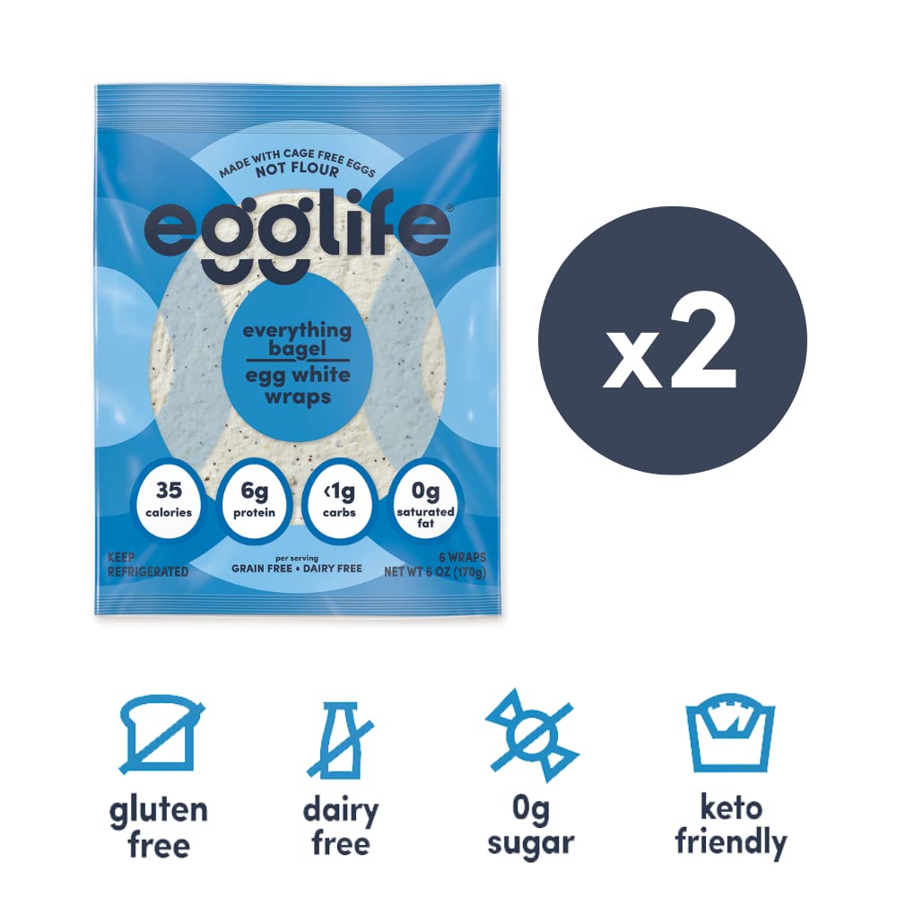 8 reviews for egglife egg white wraps, Everything Bagel, Egg White Wraps, 12 Total Wraps (2-6 Packs) – Gluten Free, Dairy Free, No Flour, Sugar Free, Keto Friendly, Paleo, Low Net Carb, Protein Packed