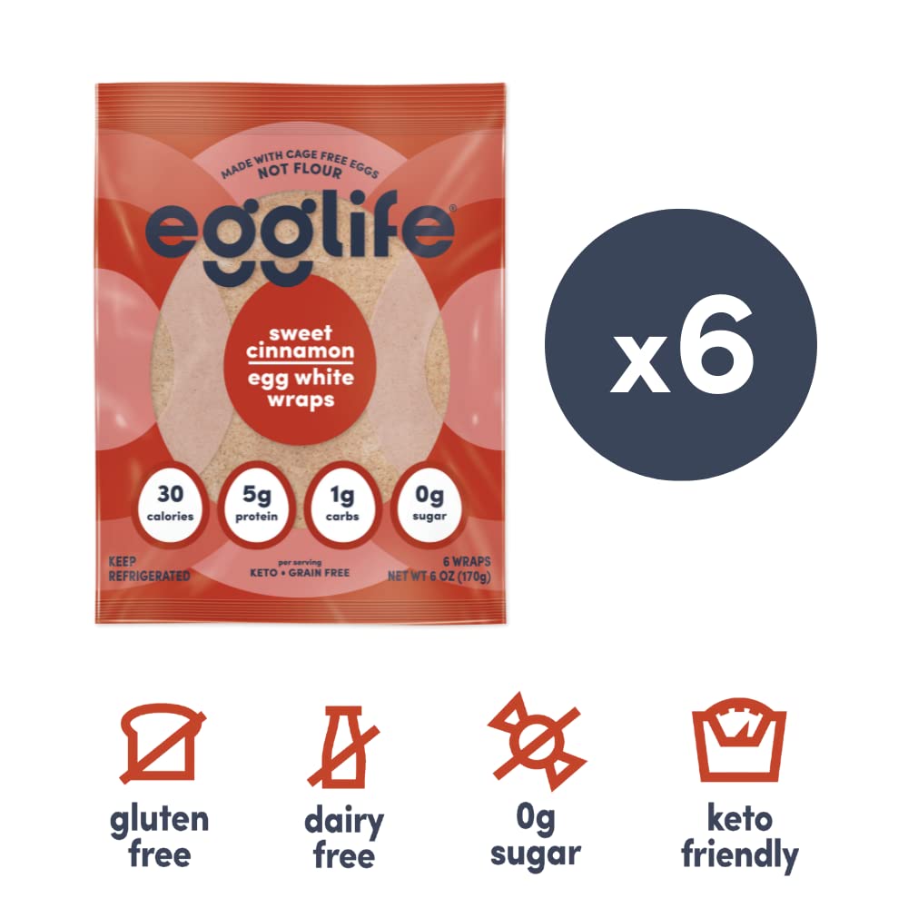 8 reviews for egglife egg white wraps, Sweet Cinnamon, Egg White Wraps, 36 Total Wraps (6-6 Packs) – Gluten Free, Dairy Free, No Flour, Sugar Free, Keto Friendly, Paleo, Low Net Carb, Protein Packed