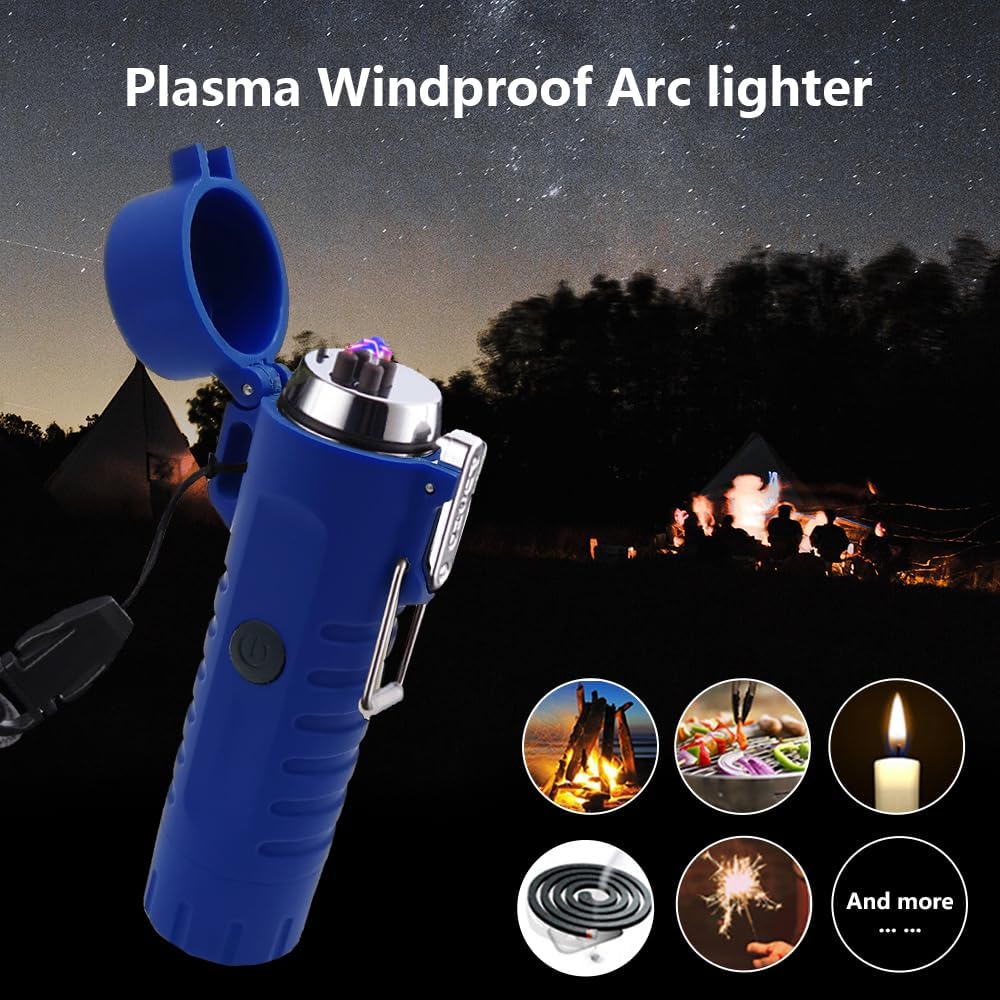 Electric Lighter Rechargeable, Waterproof Lighter Plasma Lighter with Flashlight Windproof ARC Lighter Flameless for Camping Hiking(Blue)