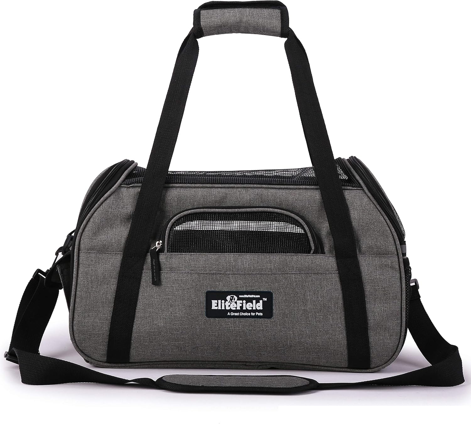 EliteField Soft Sided Pet Carrier (3 Year Warranty, Airline Approved), Multiple Sizes and Colors Available (Large: 19″ L x 10″ W x 13″ H, Charcoal Gray)