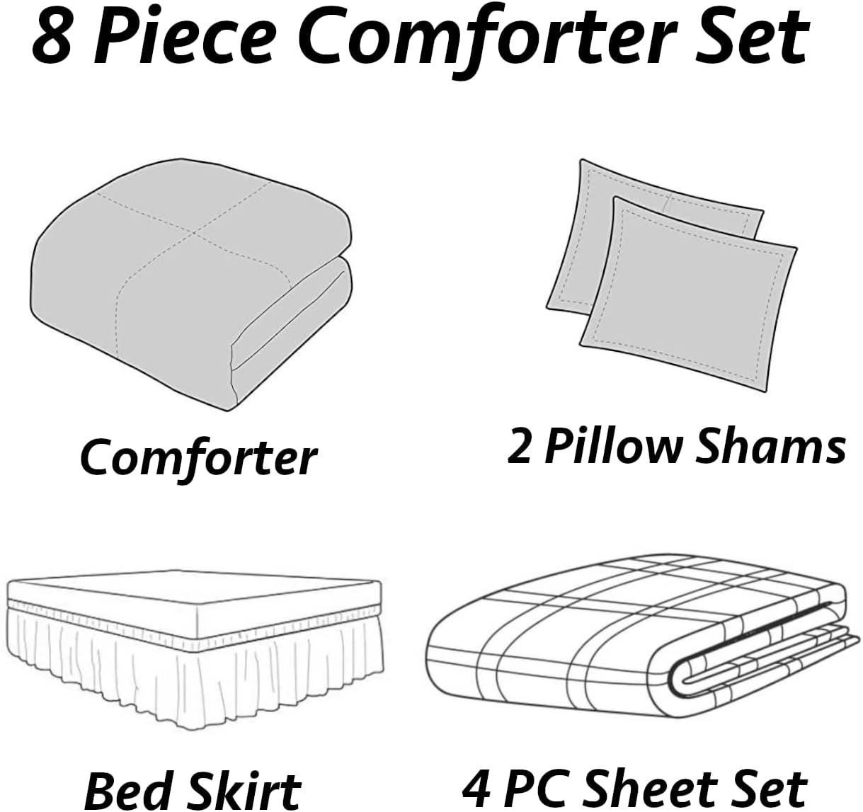 ✅ 8-Piece bedding set includes:1 Comforter, 2 Pillow shams, 1 Flat sheet, 1 Fitted sheet, 2 Pillow cases, and 1 Dust Ruffle. So once you buy this set, you will not need anything else!