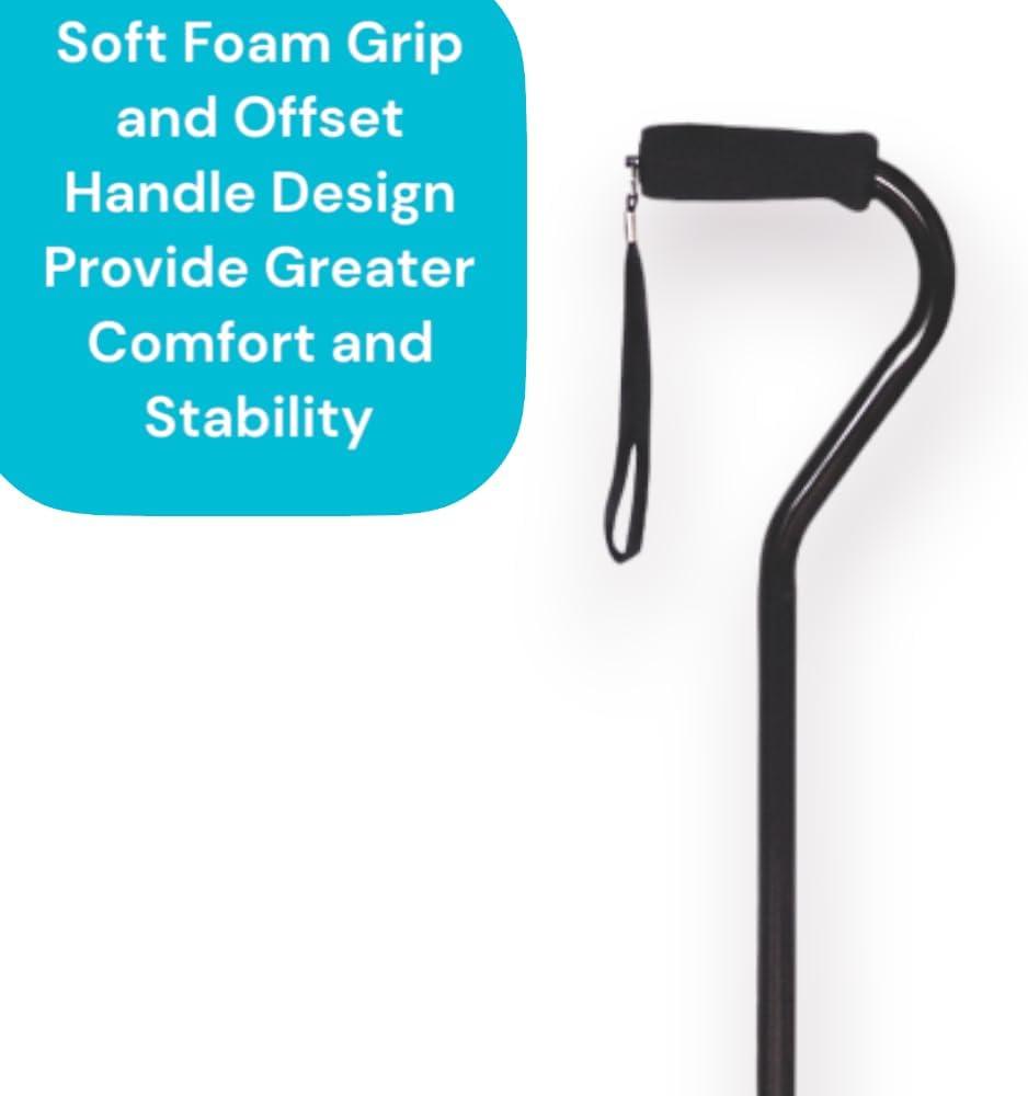 ERGONOMIC DESIGN WITH SOFT FOAM GRIP: The offset handle design of this cane allows for a more natural and comfortable grip, reducing strain on the wrist and promoting proper posture. The soft foam grip also provides added comfort during use.