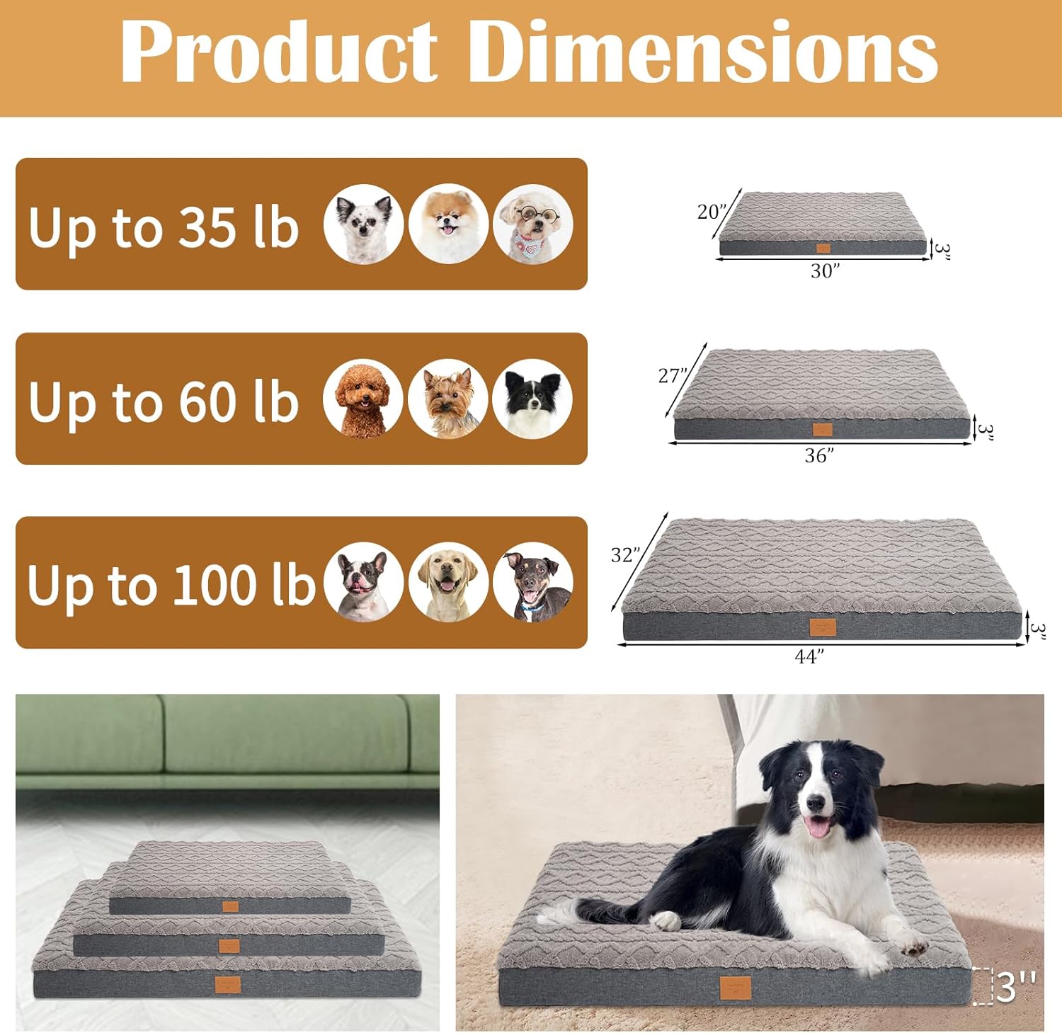 Extra Large Orthopedic Dog Bed, 44”x32”x3” Waterproof Pet Crate Bed with Egg Crate Foam Support, Removable Washable Cover, Non-Slip Bottom, for Large Dogs Up to 100 lbs (Gray) – XL