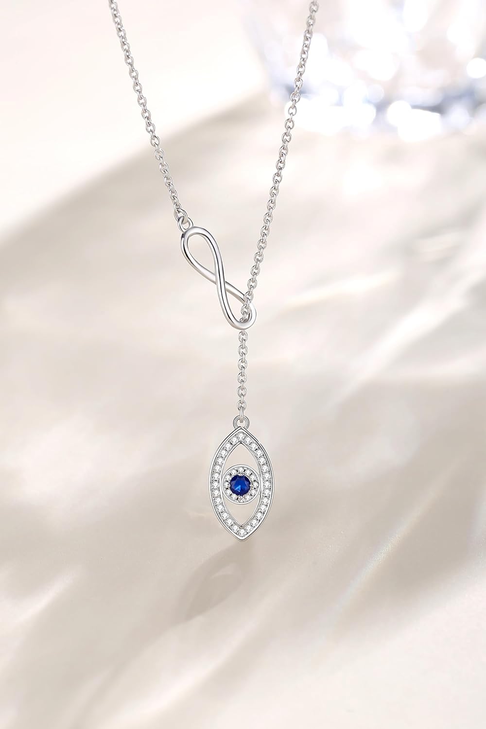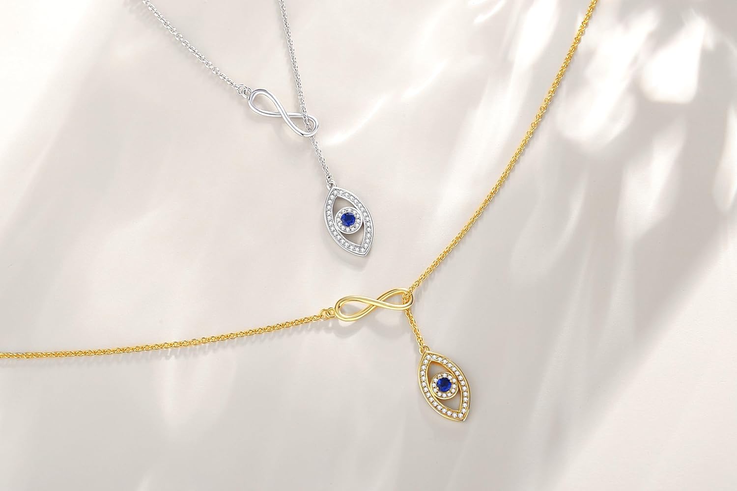 12 reviews for FANCIME 925 Sterling Silver Evil Eye Infinity Necklace Gold Plated with Cubic zircon Pendant Adjustable Y Necklace Fine Jewelry Gift for Women Girls, 16+2 Inch Chain