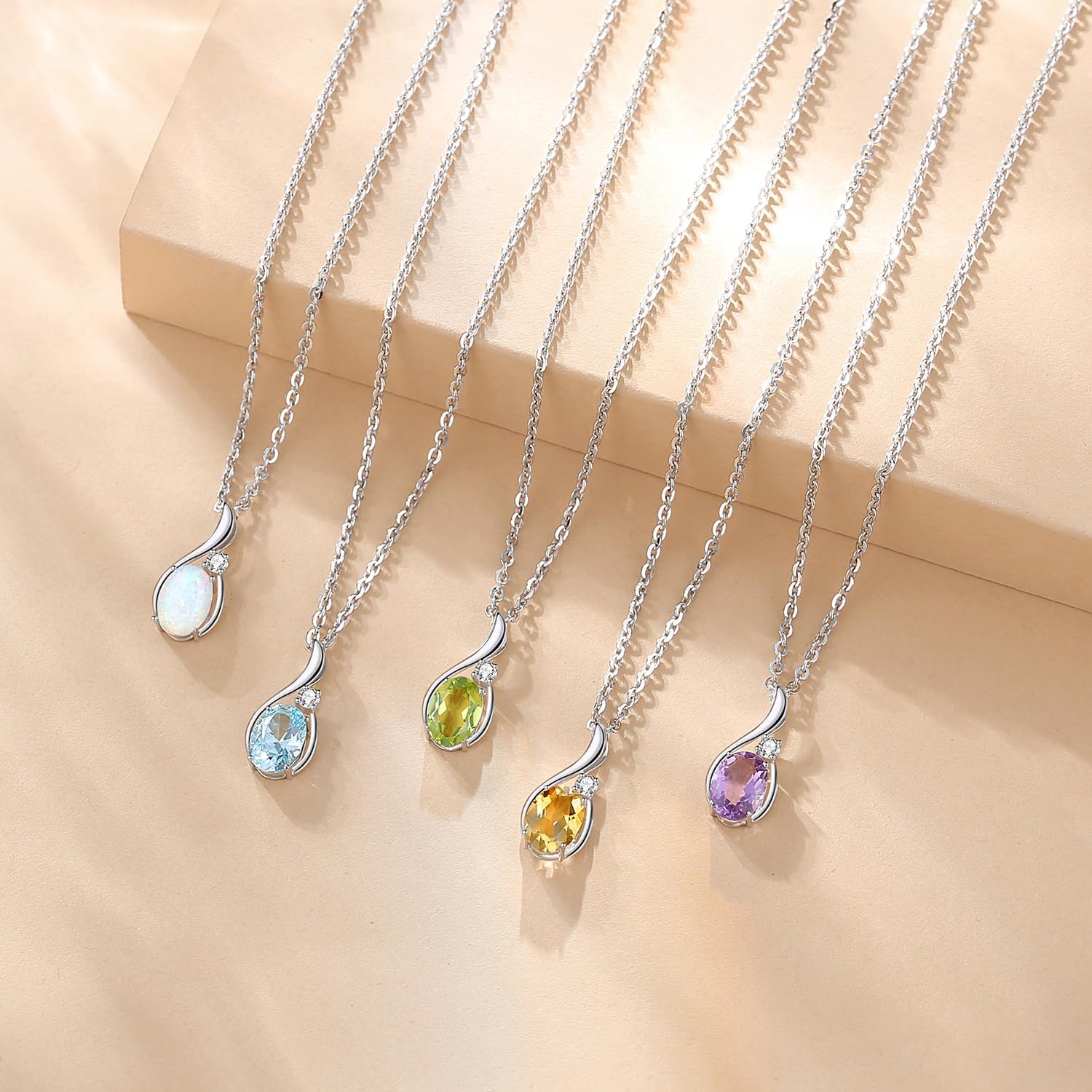 1 review for FANCIME Created Opal Necklace 14K Solid White Gold Oval Pendant with Diamond October Birthstone Necklace Valentine’s Day Gifts for Mom Women