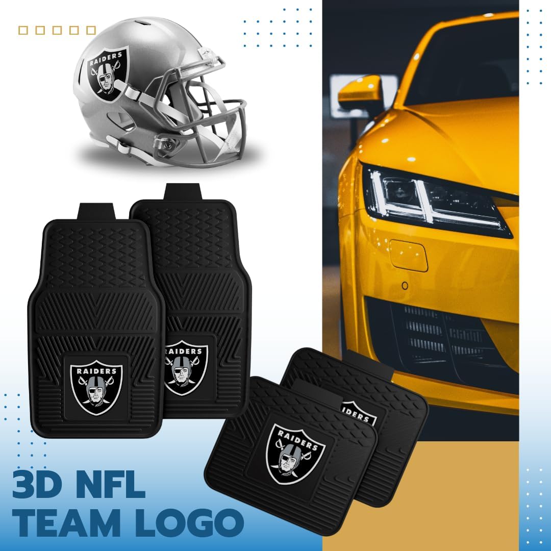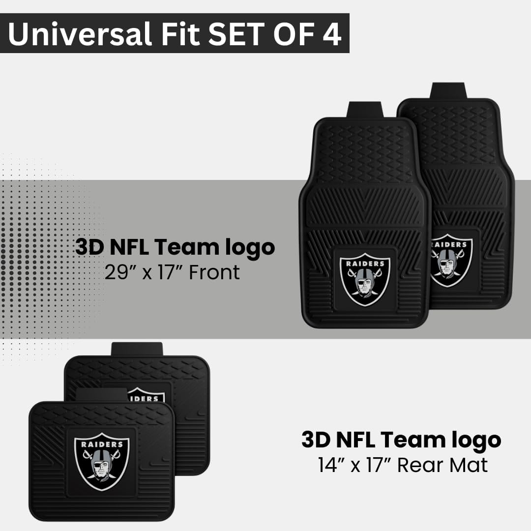 Fanmats Las Vegas Raiders Set of 4 Car Mats for Cars, SUV, Pickups – All Weather Technology Protection, Deep Reservoir Design, Universal Fit – 3D NFL Team Logo – 29” x 17” Front – 14” x 17” Rear Mat