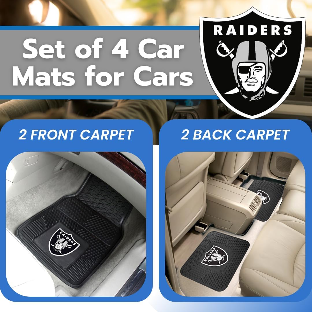 Fanmats Las Vegas Raiders Set of 4 Car Mats for Cars, SUV, Pickups – All Weather Technology Protection, Deep Reservoir design, Universal Fit – 3D NFL Team logo – 29” x 17” Front – 14” x 17” Rear Mat