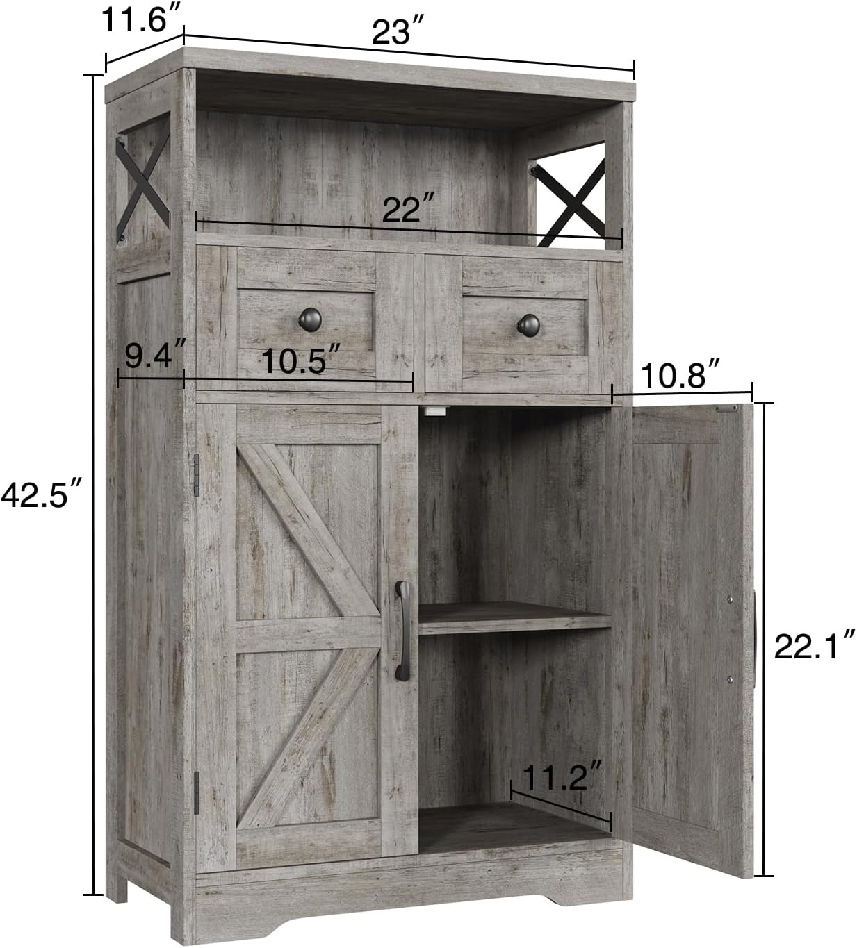 8 reviews for Farmhouse Storage Cabinet with Drawers and Adjustable Shelves, Freestanding Kitchen Pantry Storage Cabinet, Floor Storage Cabinet Cupboard for Dining/Living Room/Home Office, Washed Grey