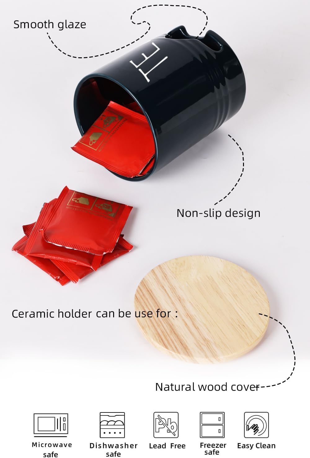 STYLISH TEA STORAGE: Our Farmhouse Tea Bag Storage Organizer Caddy Holder with Lid is a charming and practical addition to your tea drinking routine. The beautifully crafted ceramic container adds style to your tea station