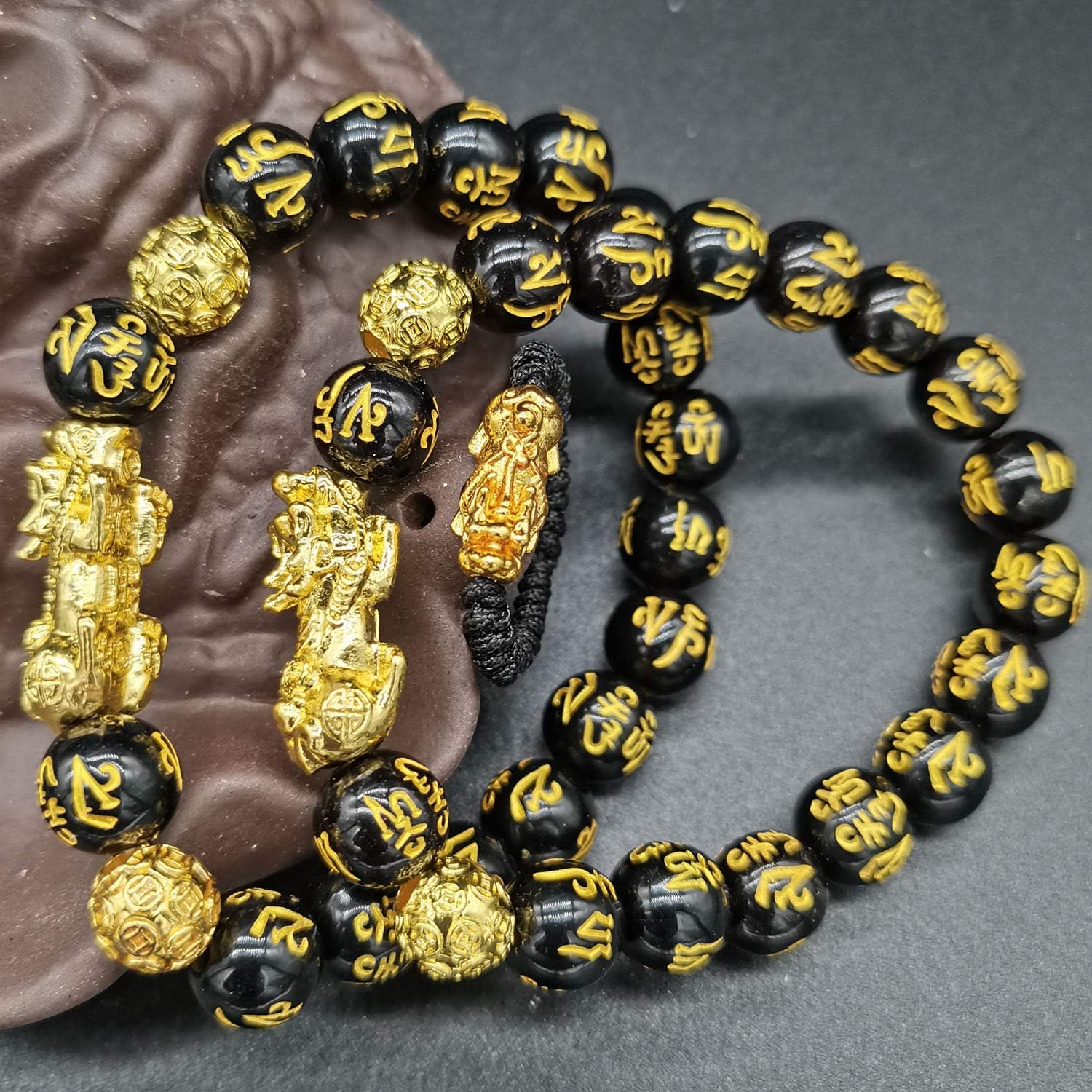 13 reviews for Feng Shui The Best 10mm Black Hand Carved Mantra Bead Bracelet with Golden Pi Xiu/Pi Yao Lucky Wealthy Amulet Brecelet