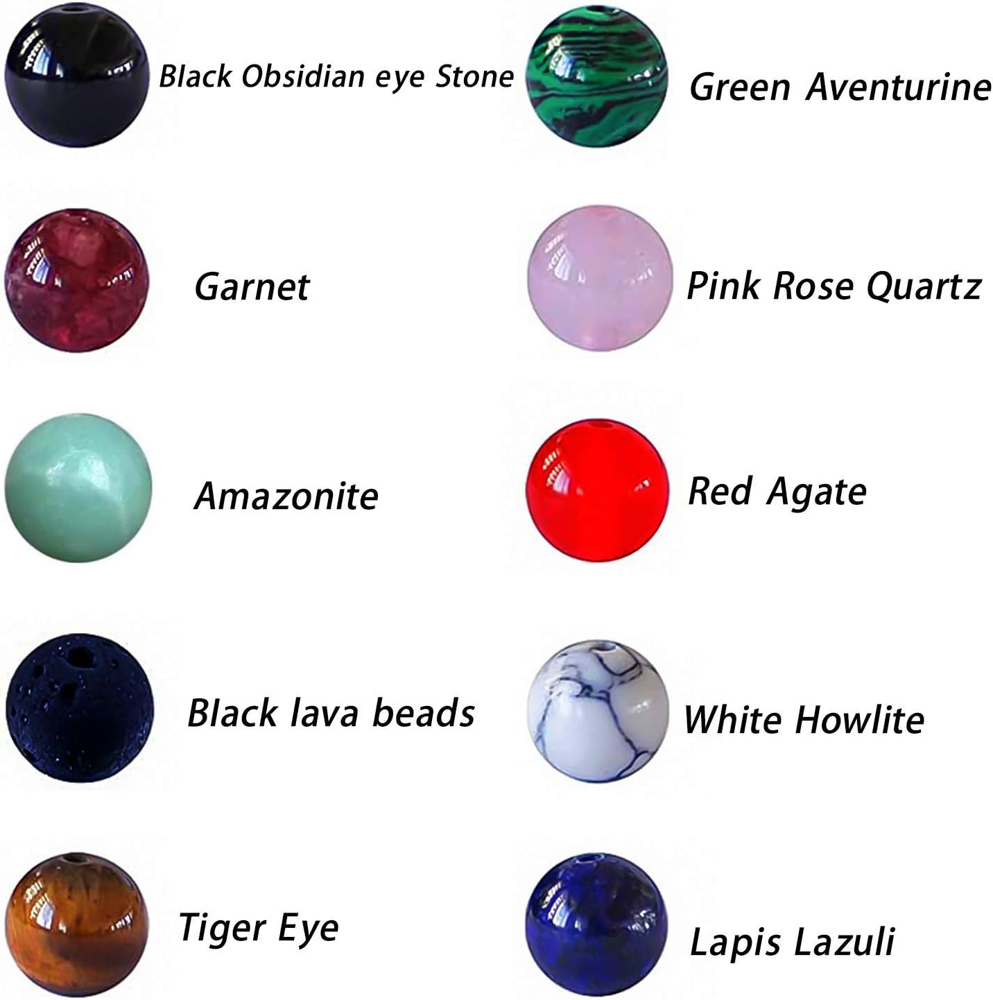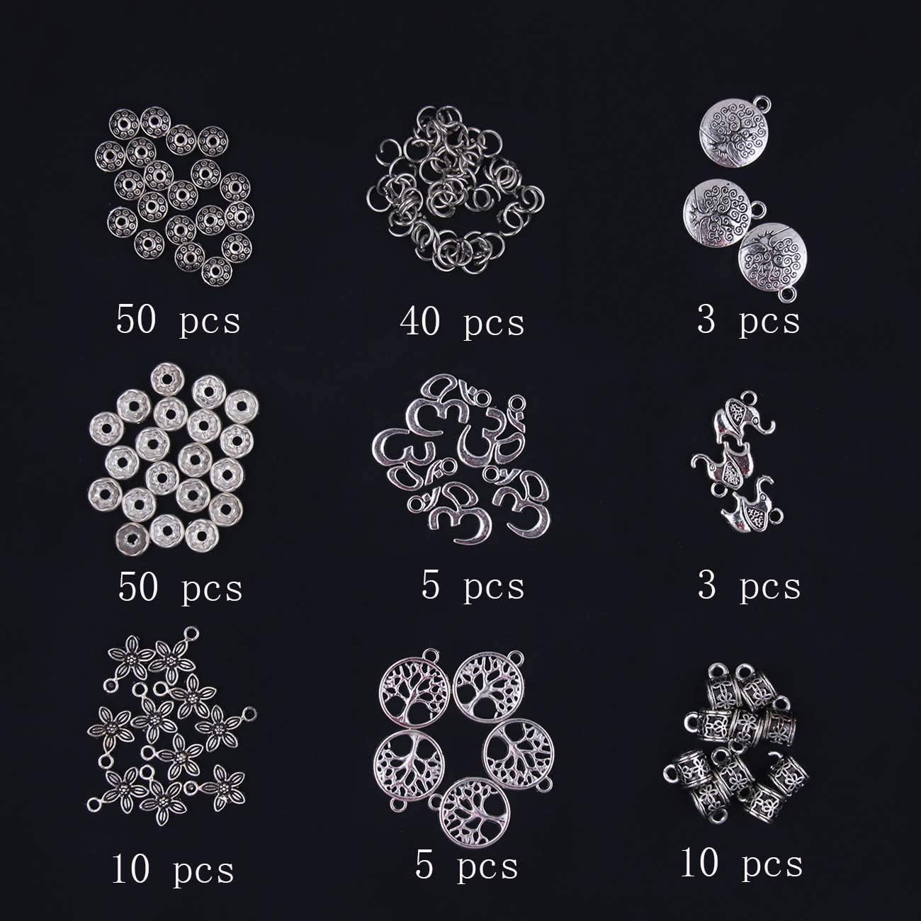 418 BEADS IN Total: The bead kit includes 240 stone beads in 10 kinds, 176 spacer beads/accessories in 9 kinds (as shown in the picture), 2 Strings (black and white) and 1 plastic box to keep the beads organized.