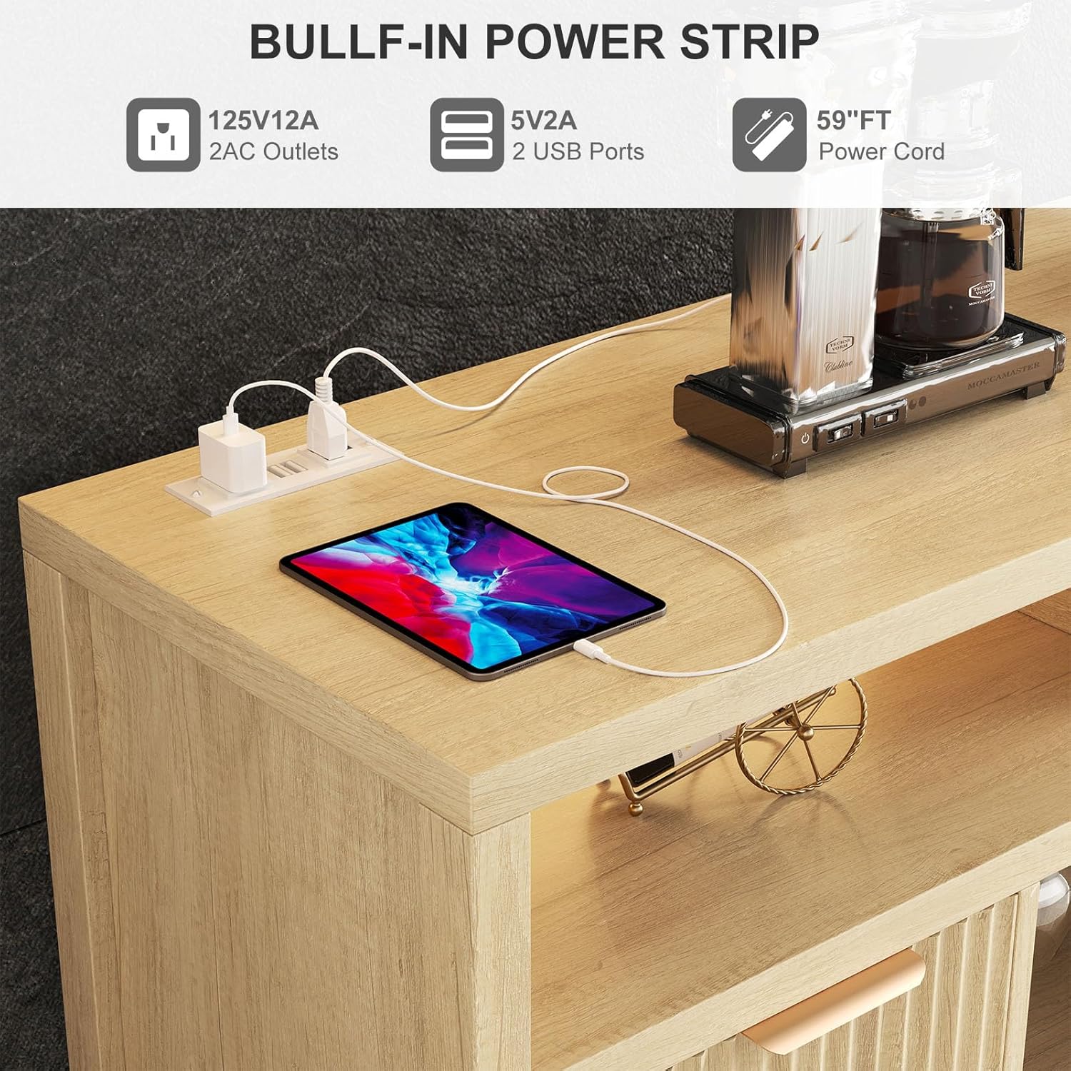 Built-In Charging Station: Stay connected with the built-in charging station in our sideboard buffet cabinet with storage. This feature ensures your devices are always powered, making it a functional console table with storage.