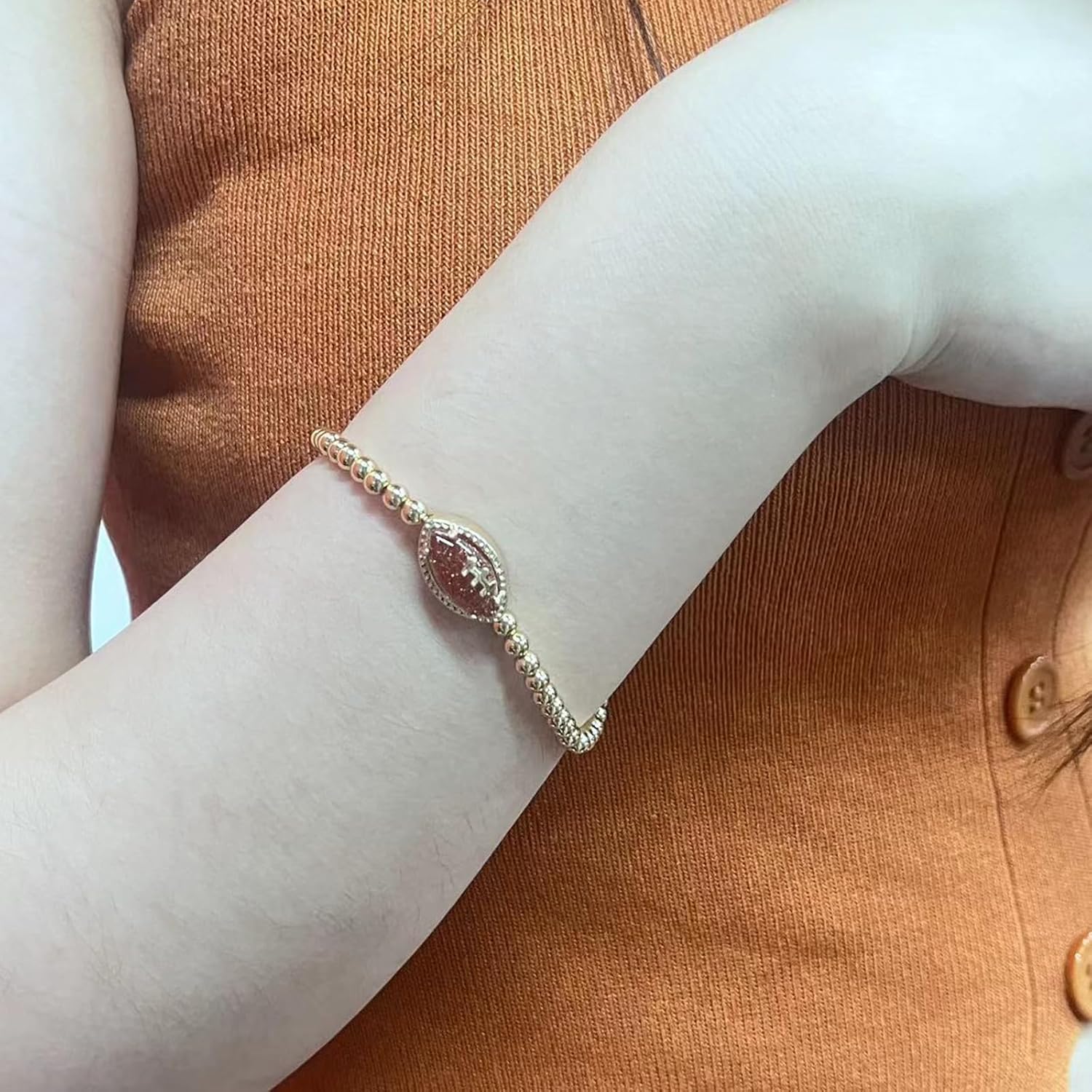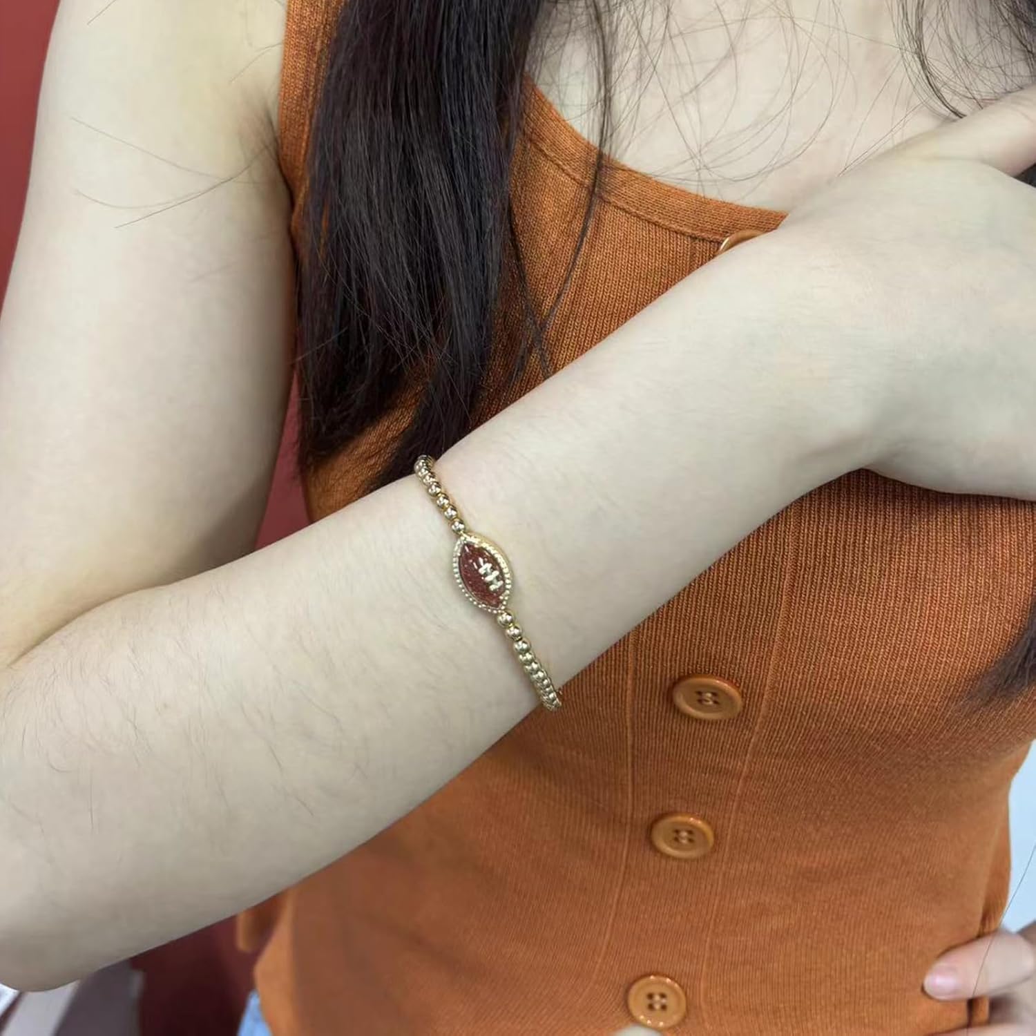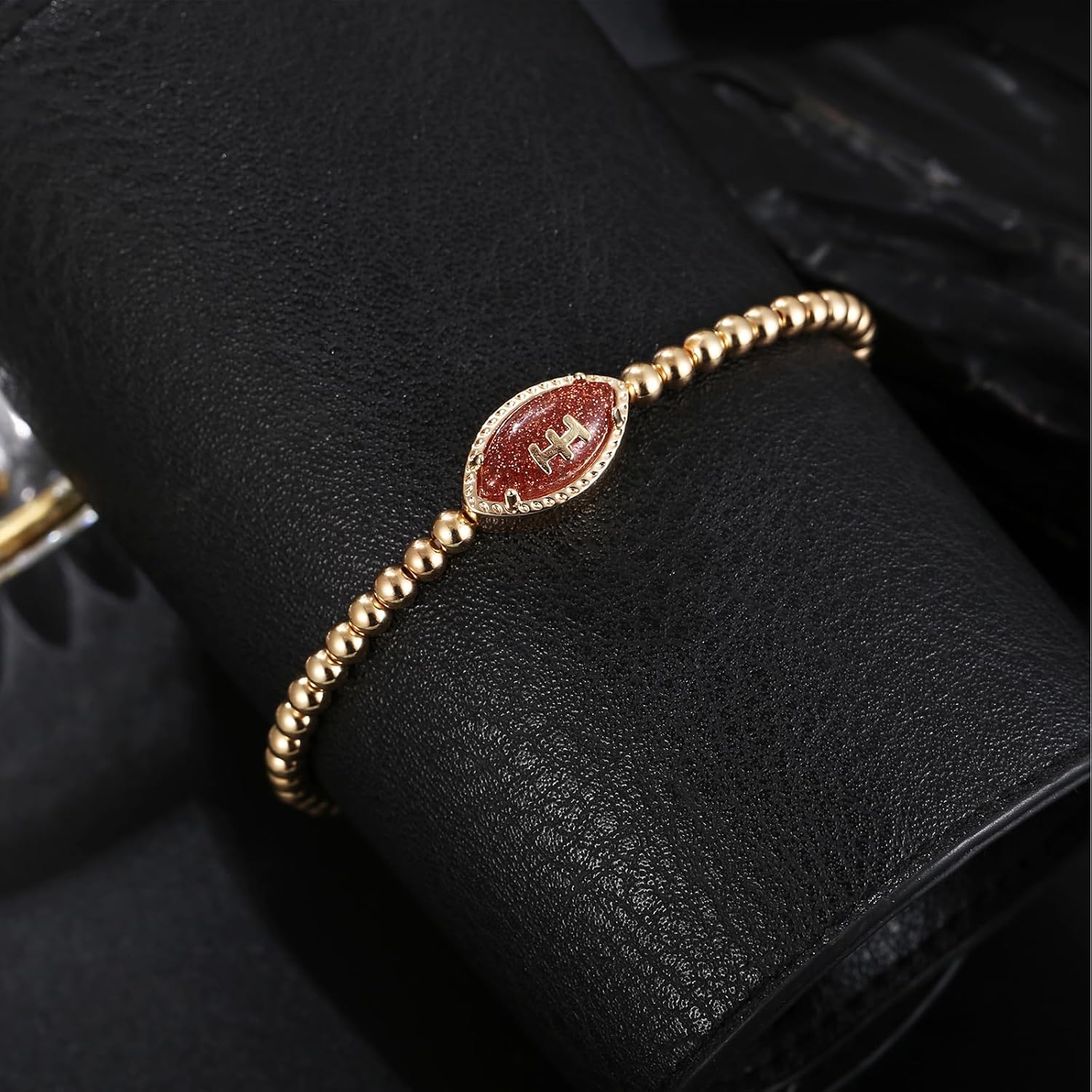 1 review for Football Game Day Bracelets for Women Gold Beaded Stretch Bracelets Sports Fan Bracelet Accessories