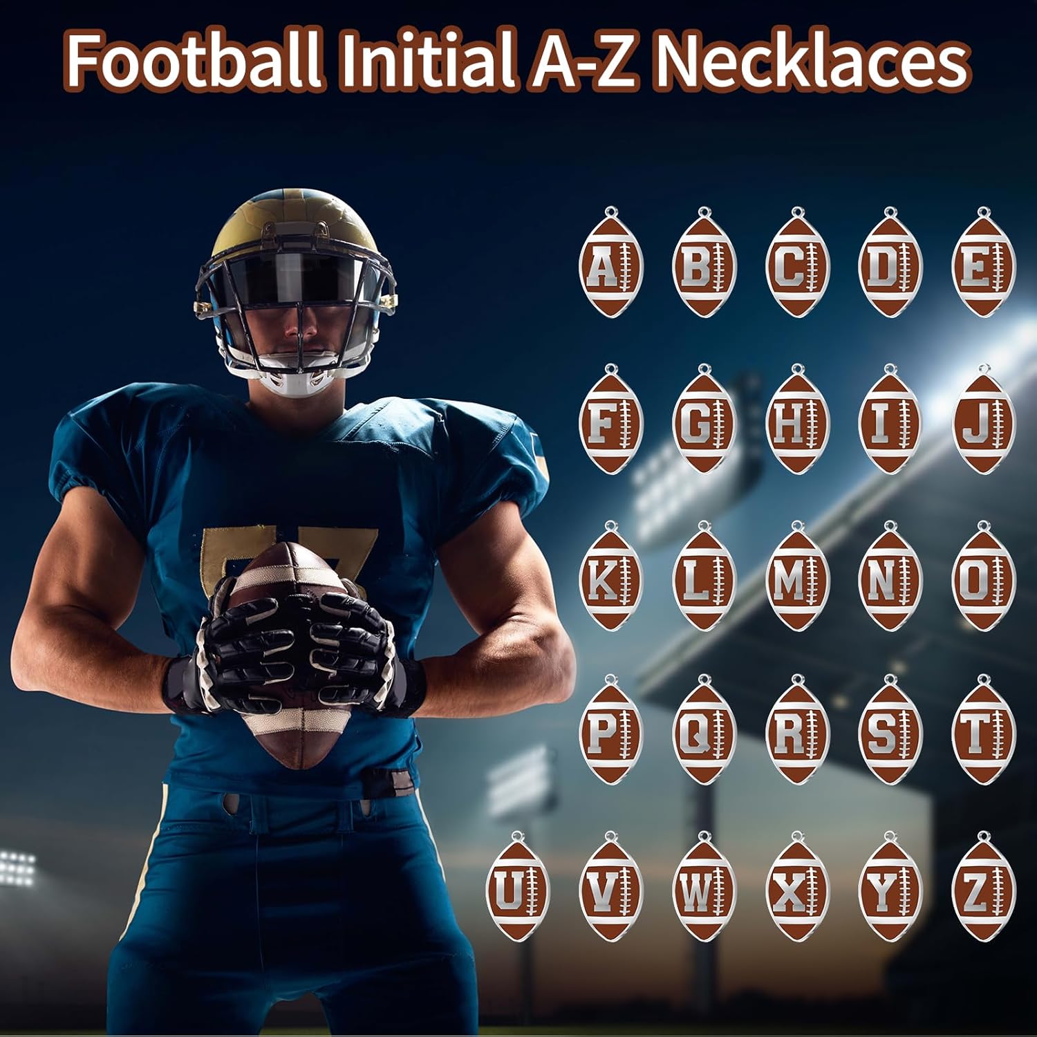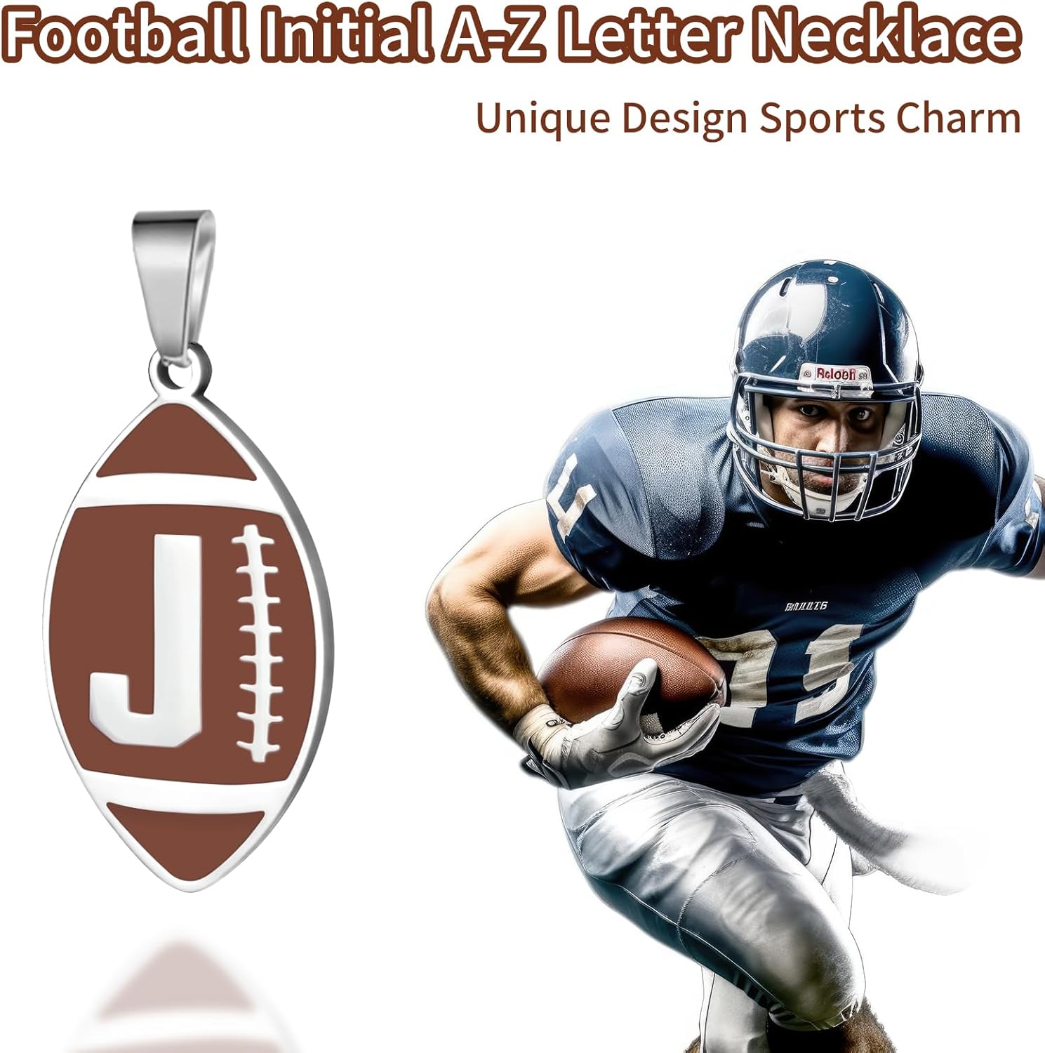 Football Initial A-Z Letter Necklace for Men Boys Sports Charm Pendant Stainless Steel Football Chain Personalized Football Gifts for Team Player Athlete Lover Fans