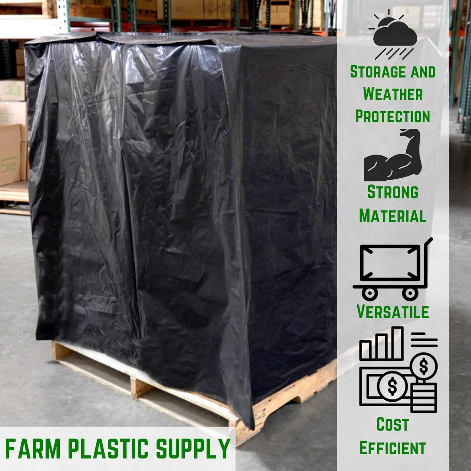 Premium Plastic Sheeting – Farm Plastic Supply offers premium heavy clear plastic sheeting for all uses. Our plastic products are constructed from quality LDPE – low density polyethylene. Our plastic 3 mil pallet covers and strong and durable and will protect your products from everything.