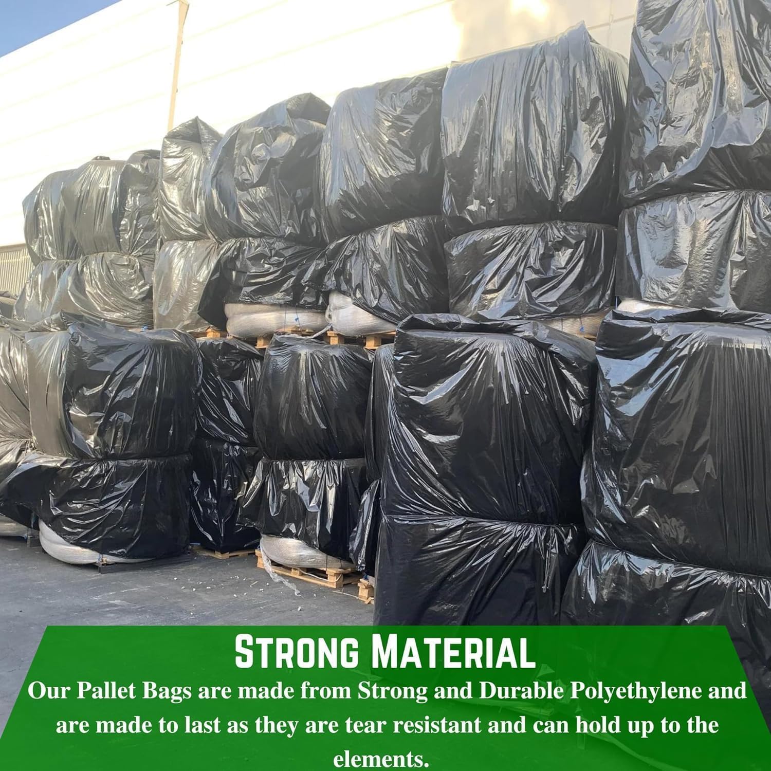 Strong Material: Our pallet coverings are also tear resistant, rot resistant, and acid resistant. Protect your cargo or any items from rain, moisture, and water with these strong and durable Pallet Covers.