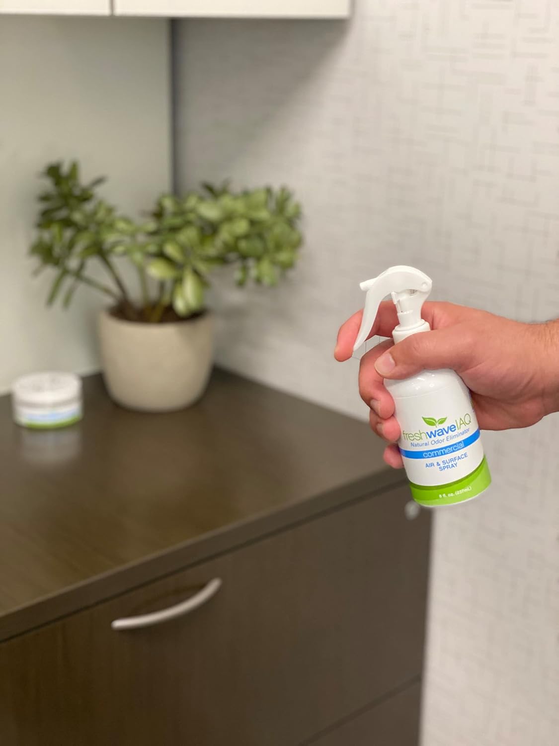 Fresh Wave IAQ’s Air & Surface Spray is ideal for fast, targeted odor control. It instantly bonds and eliminates odor molecules in the air smells that have penetrated deep into fabrics or resting on surfaces. Spray in areas where the smell is strongest, and odors are instantly eliminated.