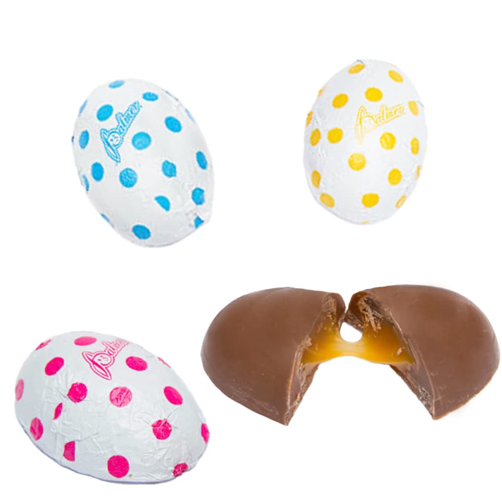 Easter Caramel Half Eggs Milk Chocolate, Happy Easter Day Eggs, Party Bag Fillers, Individually Wrapped, Kosher Certified Dairy Enjoy these Unique Fun Chocolate Easter Eggs! Our mouthwatering long-lasting flavors make these Happy Easter Eggs a special treat for students, customers at the doctor’s office or bank and even for adults! Everyone will Love Them! These Easter Milk Chocolate Caramel Half Eggs are ideal to use as Party Bag fillers, Stocking Stuffers, Events, Birthday Parties, Piñata Fillers, Care Packages, Wedding Party Favors, and any Other Event that needs some Sweetness to it! Tastes as good as they look and are guaranteed to satisfy your cravings! Our Chocolate Caramel Half Eggs come in 4 different Sizes Bags with Approx. 47 Per Pound: Half-Pound Pack, 1 Pound Pack, 2 Pounds Pack, and 5 Pound Pack (Bulk). Comes in a resealable bag to ensure quality and freshness. Don’t want to wait till Easter to enjoy the most classic treat out there? These chocolates are available all year and are just as enjoyable as on Easter Day.