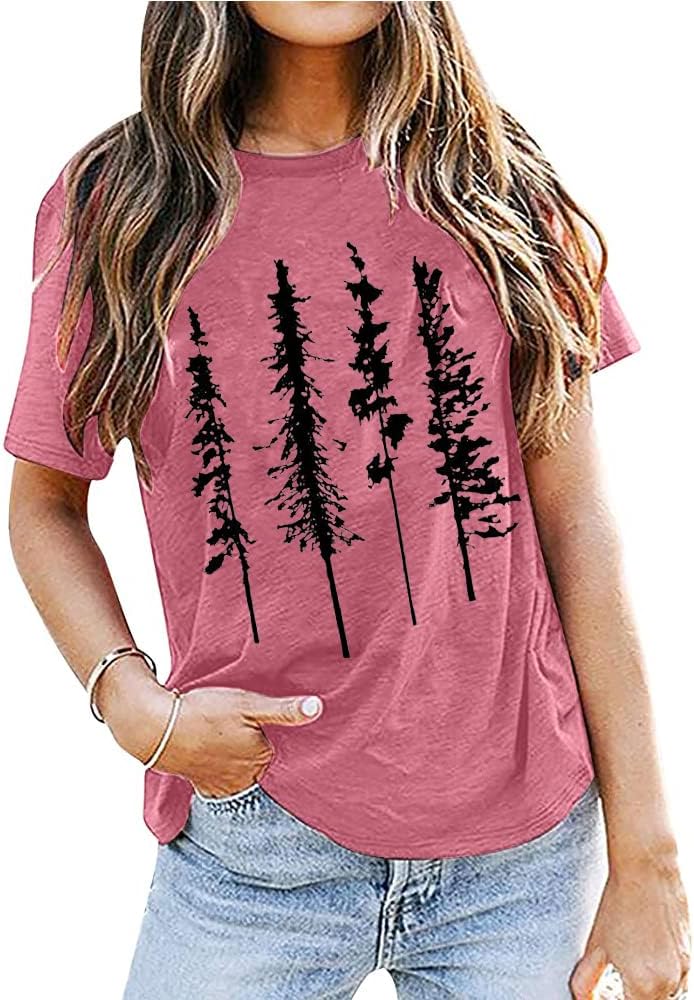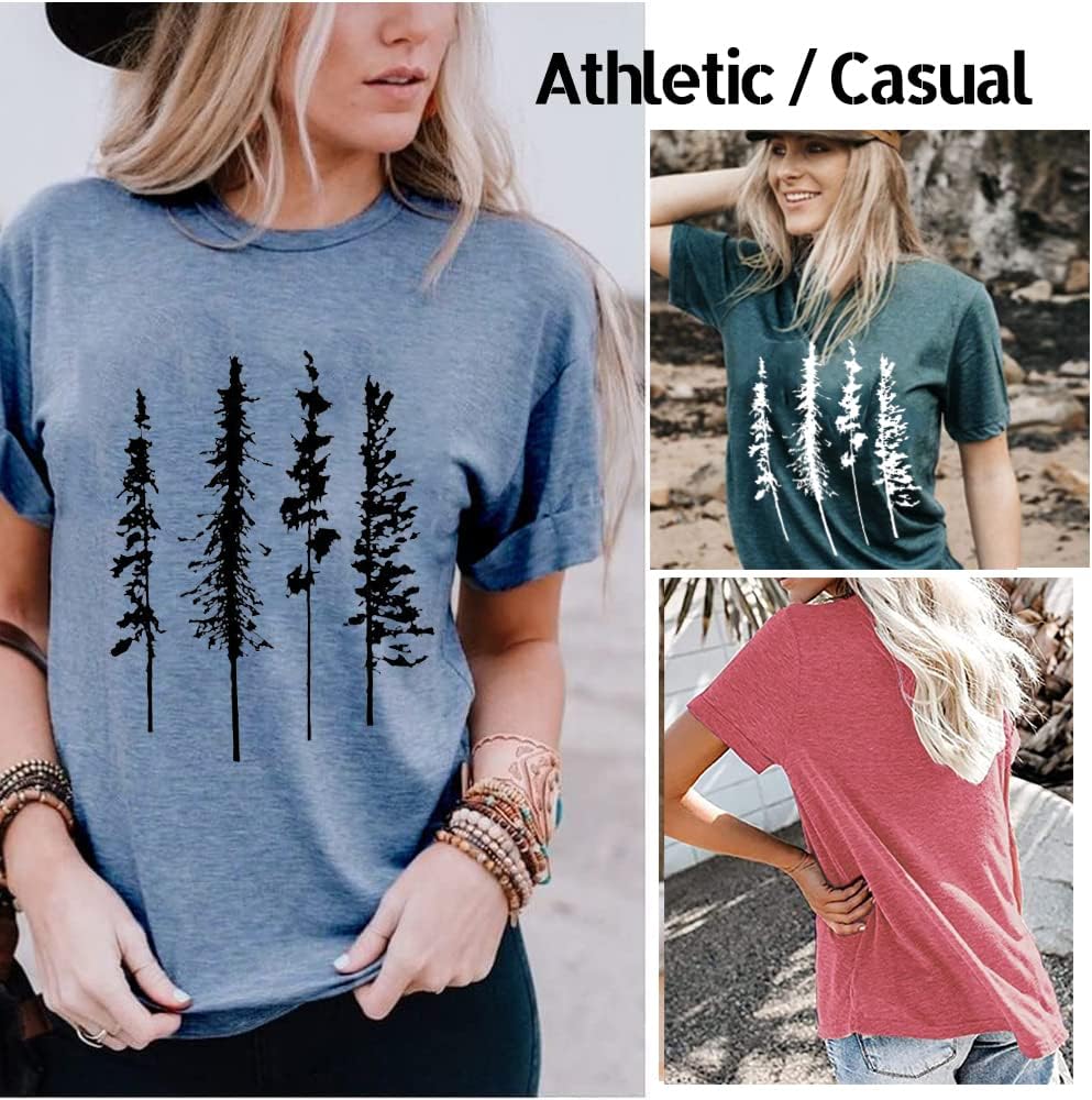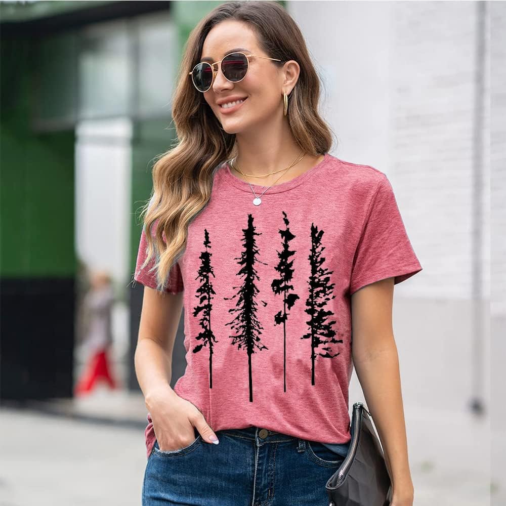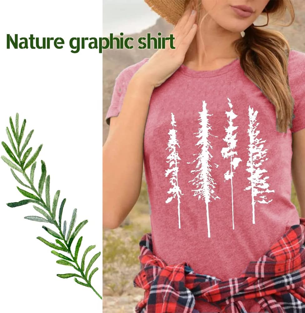 Funny Graphic Women Skinny Pine Tree Shirt Summer Hiking Camping Athletic Tees Nature Casual Comfy Clothes